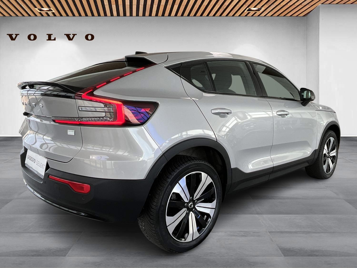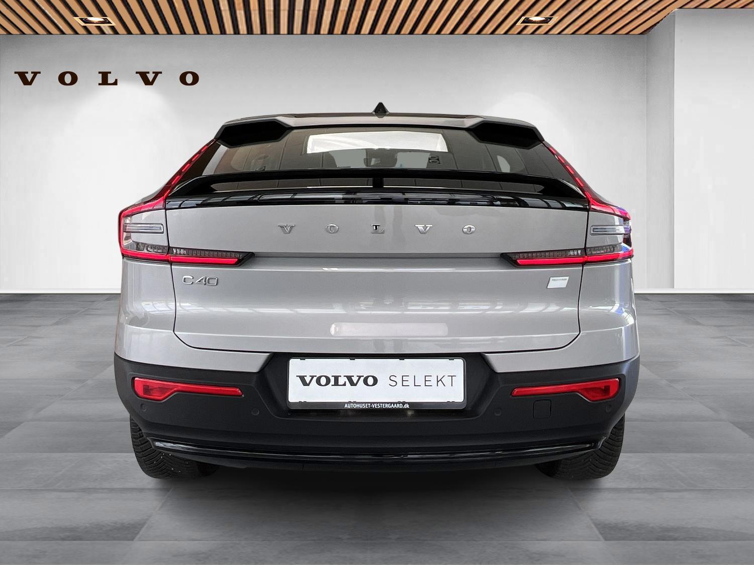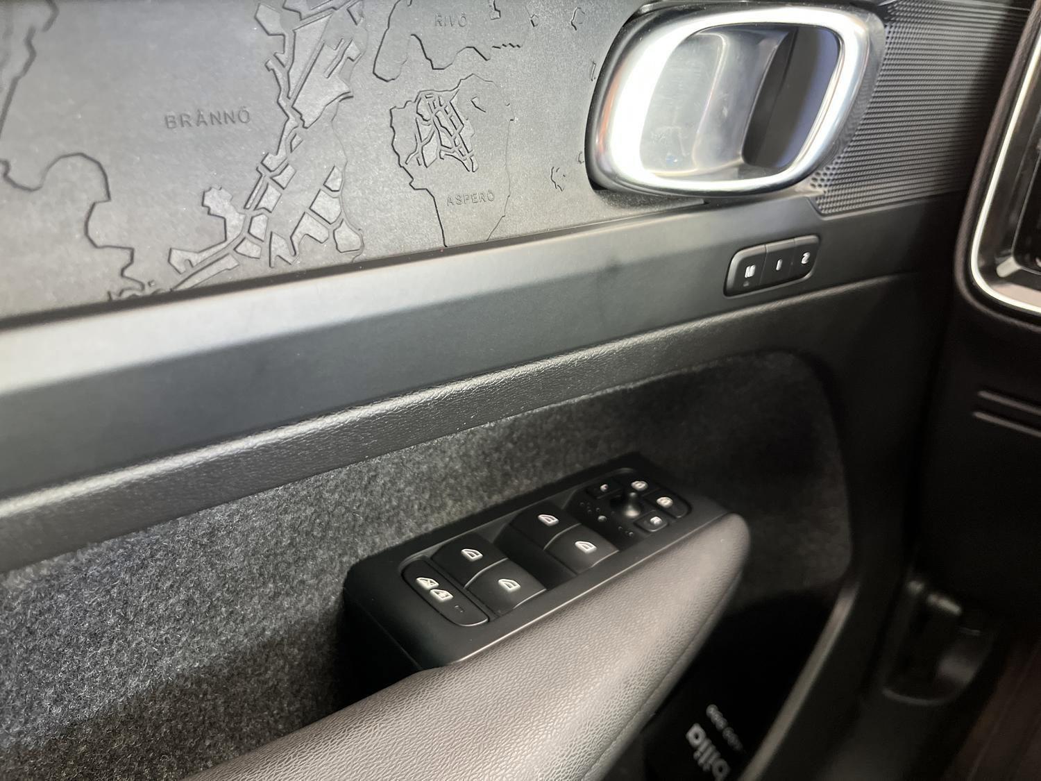 | 12V udtag, Apple CarPlay, Aut. nedblændeligt bakspejl, Automatisk op-/nedblænding, Bakkamera, Bluetooth, DAB+ radio, Digital instrumentering, El indst. førersæde m. memory, Elektrisk bagklap, El-foldbare spejle m. memory og varme, El-håndbremse, El-justerbart passagersæde, Elruder for/bag, Fartpilot adaptiv, Håndfri telefon, Infocenter, Klimaanlæg 2-zoner, Multifunktionsrat, Musikstreaming via bluetooth, Navigation, Nøglefri døre, Nøglefri start, One pedal drive, Parkeringssensor for/bag, Radio, Regnsensor, Trådløs mobilopladning, Udvendig temperaturmåler, USB-C, Varme i bagsæde, Varmepumpe, Volvo On Call, 19" Alufælge, Frunk, Hajfinneantenne, Metallak, Tågelygter for, Armlæn, Armlæn m. kopholder i bag, Bagagerumsdækken, Læderrat, Mørk loftbeklædning, Rat m. varme, Stofindtræk, 7 Airbags, Auto hold, Automatisk nødopkald, Blindvinkelassistent, Isofix, Lyssensor, 3-faset ladning, Helårsdæk, Google maps, Glastag, Ikke ryger, Service overholdt, Volvo Selekt |