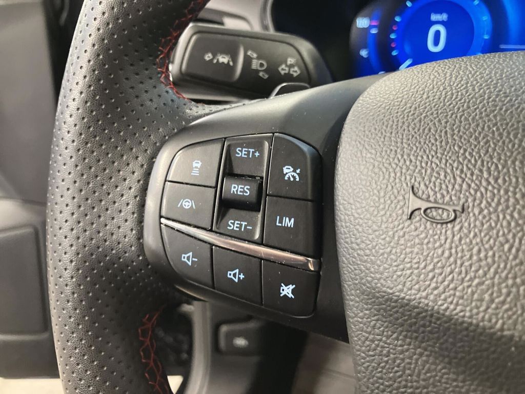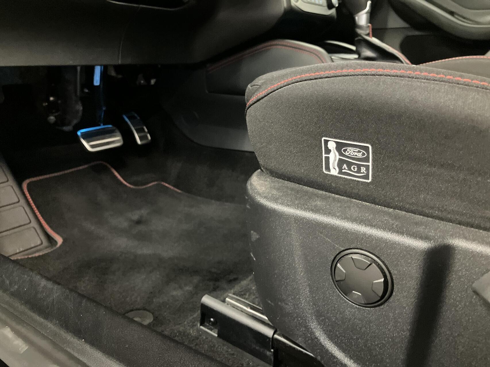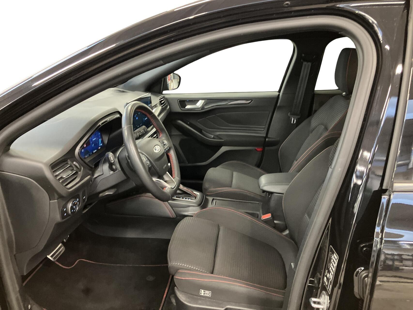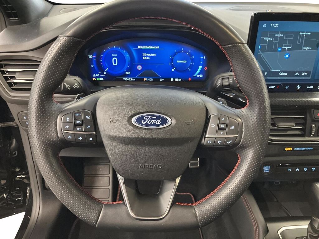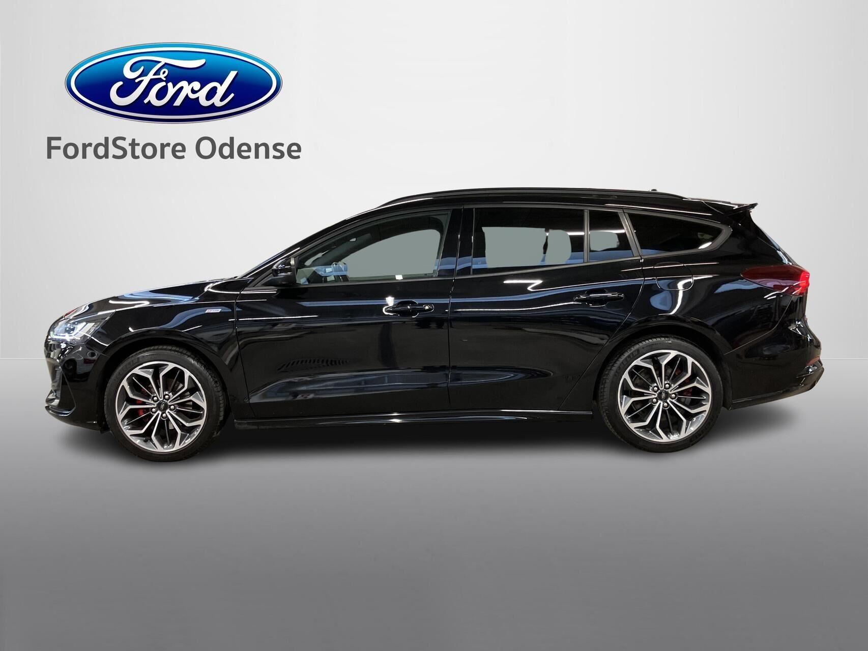 ST-Line X Styling. Dobbelt Udstødningslook. ST-Line X Sportsundervogn. Sidespejle med Indstigningslys. Mørktonede Ruder. Sorte Tagrælinger til Stationcar. Trådløs Oplader. 12,3 Digital Instrumentering. Bakkamera. Nøglefri Døre og Start. Mørkt Loftsbetræk. Sportsrat m. flad bund/ Røde Syninger. Paddleshift (Kun Automatgear). Ambient Lighting i Kabinen. Gulvmåtter for og bag. Lys i Makeup Spejle. Armlæn med Ski-lem ved Bagsædet. 2 stk. USB (A+C) bag. Fuld LED Forlygter med kørelys, Fjernlys, Nærlys. Tågeforlygter med Drejefunktion. LED Baglygter. El-Betjente, Opvarmede, El-Foldbare Sidespejle med Blinklys. SYNC4, Navigation, 13,2” Touchskærm, DAB+. Trådløs Apple Carplay og Android Auto. 6 Højttalere. Bluetooth. 1 års Connected Navigation/Ford Secure Service. 2-Zoners Automatisk Klimaanlæg. Nøglefri Start. Regnsensor. Automatisk Nedblændeligt Bakspejl. Parkeringsensorer for og bag. Fartpilot med Intelligent Hastighedsbegrænser. Elektrisk Parkeringsbremse. Elruder for og bag. 6 Airbags. Pre-Collision Assist/Nødbremse. Lane Keeping Aid og Alert. Opvarmede Forsæder. Højdejusterbart Førersæde med Lændestøtte. 60/40 Splitbagsæde. Nødhjælp via Bluetooth. Valgfrie Drive Modes (Eco, Normal, Sport). Vådzone i Bagagerum (Stationcar).