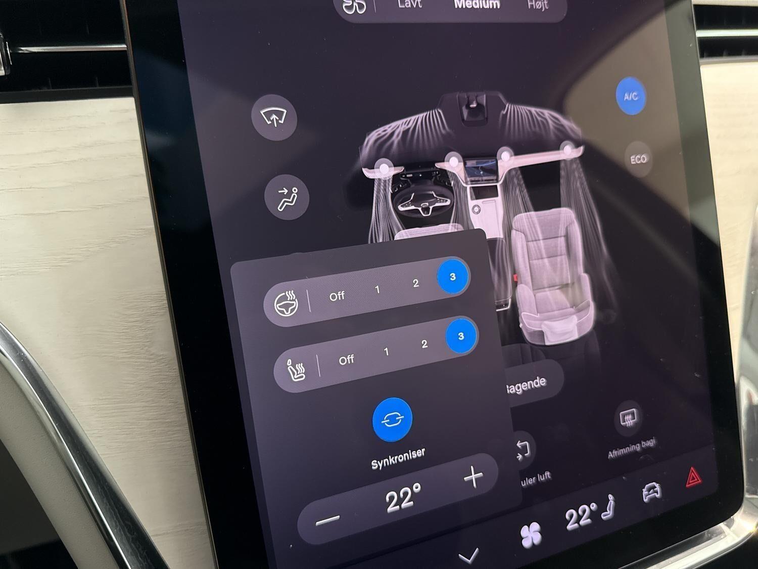 udstyr: 7 sæders, aut. nedbl. bakspejl, alarm, el betjent bagklap, Apple CarPlay, navigation, 4 zone klima, læderrat, Alufælge, varme i rat, 7 personers, nøglefri tænding, 360° kamera, elektrisk parkeringsbremse, dobbelt bagagerumsbund, el-justerbar lændestøtte, splitbagsæde, glastag, el-klapbare sidespejle m/varme, matrix LED forlygter, LED baglygter, dynamisk blinklys, elektrisk kabinevarmer, varmepumpe, centrallås, fjernb. centrallås, nøglefri adgang, adaptiv fartpilot, kørecomputer, digitalt cockpit, bagagerumsdækken, multifunktionsrat, stofindtræk, fuld LED forlygter, LED kørelys, tagræling, sædevarme, udv. temp. måler, 4x el-ruder, automatisk start/stop, frunk, fod betjent bagklap, trådløs mobilopladning, automatisk forvarmning af batteri, type-2 ladekabel, DAB+ radio, app integration, håndfrit til mobil, musikstreaming via bluetooth, USB-C tilslutning, regnsensor, parkeringssensor (bag), parkeringssensor (for), dæktryksmåler, træthedsregistrering, førerovervågning med advarsel, skiltegenkendelse, isofix, automatisk lys, fjernlysassistent, antispin, ESP, vognbaneassistent, blindvinkelsassistent, automatisk nødbremsesystem, stemmebetjening, auto hold, automatisk nødassistent