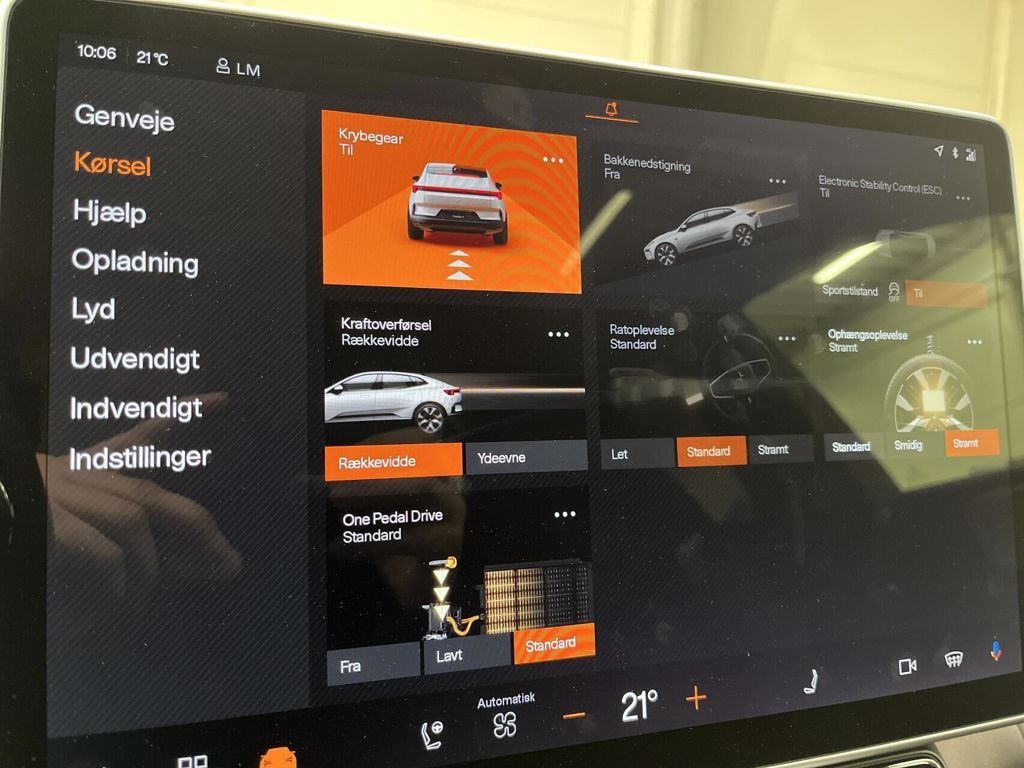 | Aircondition, Android Auto, Android Auto Wireless, Apple CarPlay, Apple CarPlay Wireless, Aut. forvarmning af batteri, Automatgear, Automatisk op-/nedblænding, Automatisk lys, Bakkamera, Bluetooth, Centrallås, DAB radio, Digital instrumentering, El indst. forsæder, El indst. førersæde, El indst. førersæde m. memory, El-bagklap med fodsensor, Elektrisk bagklap, El-foldbare spejle, El-foldbare spejle m. memory og varme, El-foldbare spejle m. varme, El-håndbremse, El-justerbar lændestøtte, El-justerbar lændestøtte i forsæder, Elruder for, Elruder for/bag, El-spejle, Fartpilot adaptiv, Fjernbetjent centrallås, Frontkamera, Head-up display, Harman Kardon anlæg, Håndfri telefon, Klimapakke, Klimaanlæg, Klimaanlæg 2-zoner, Klimaanlæg 3-zoner, Multifunktionsrat, Musikstreaming via bluetooth, Navigation, Nøglefri døre, Nøglefri start, One pedal drive, Panoramaglastag, Parkeringssensor bag, Parkeringssensor for, Parkeringssensor for/bag, Planlagt forvarmning af kabine, Radio, Regnsensor, Servo, Adaptive LED Forlygter, Dynamisk Fuld LED forlygter, Fuld LED forlygter, Intelligente Matrix LED forlygter, Kurvelys aktivt, LED baglygter, LED forlygter, LED forlygter med fjernlys assistent, Matrix LED forlygter, Tonede ruder, El-føresæde , El-justerbart førersæde, El-justerbart førersæde med memory, Højdejusterbart førersæde, Højdejusterbart passagersæde, Glastag, Justerbar lændestøtte, Justerbart rat, Kopholder, Kunstlæder, Trådløs opladning af smartphone, Virtuelt bakspejl, 360 gr. View kamera, 3-Faset, Adaptiv Fartpilot, Blindvinkelassistent, BLIS, Dæktrykssensor, Isofix, 20" Alufælge, Anhængertræk, Anhængertræk svingbart (elek.), Anhængertræk svingbart (man.), Sædevarme for, Sædevarme for/bag, Udvendig temperaturmåler, Trådløs mobilopladning, Varme i rat, Varme i bagsæde, Varmepumpe |