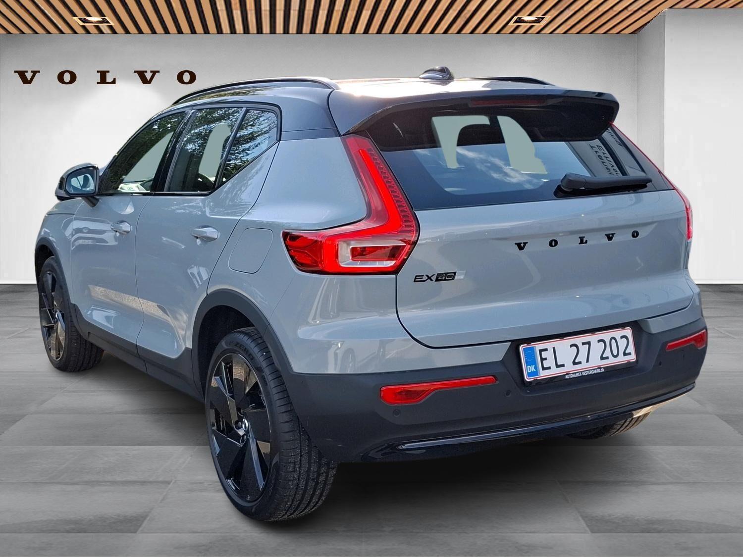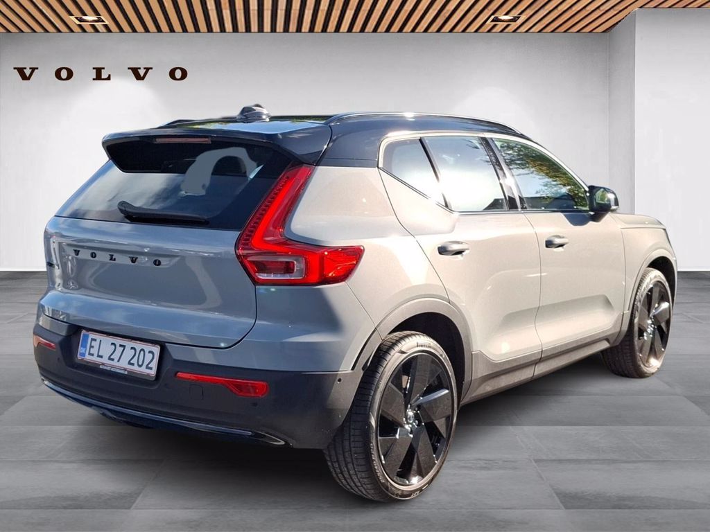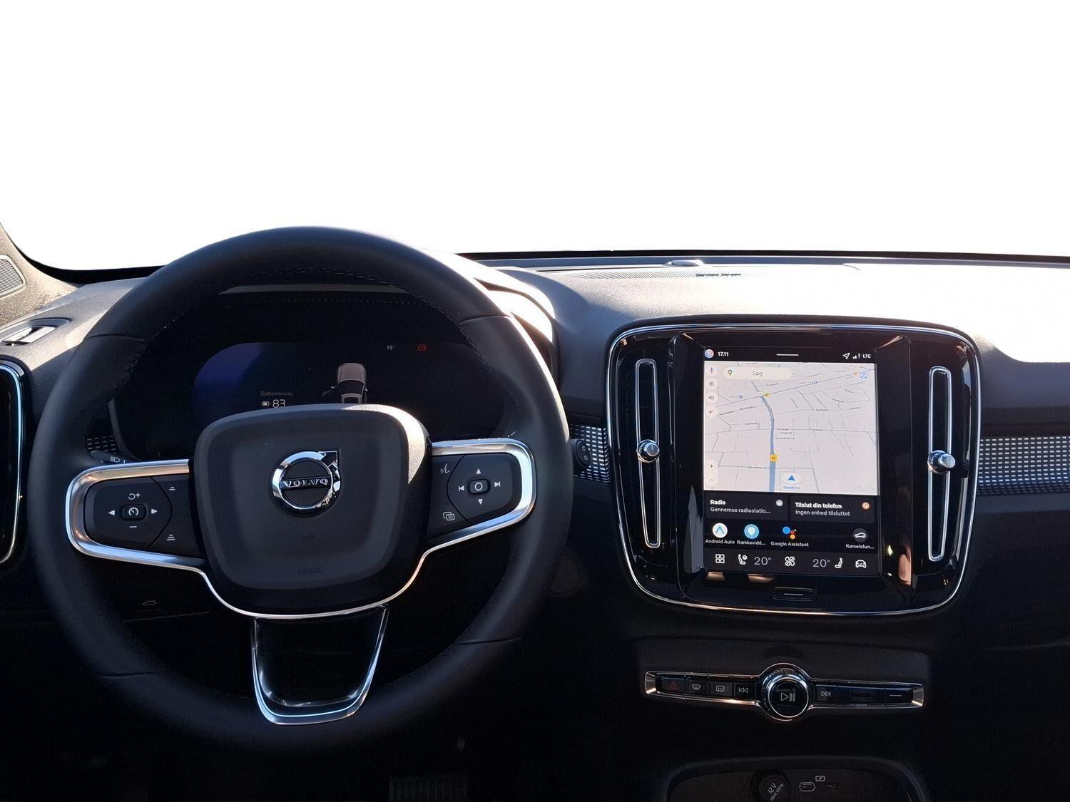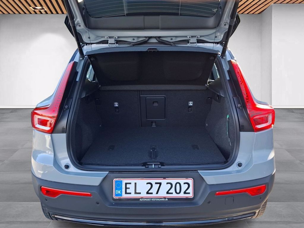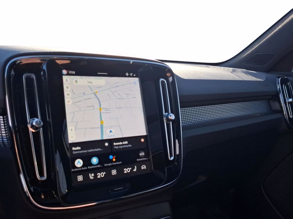 | Apple CarPlay, Aut. nedblændeligt bakspejl, Automatgear, Automatisk lys, Automatisk op-/nedblænding, Bakkamera, Bluetooth, Centrallås, DAB+ radio, Digital instrumentering, El indst. forsæder, El indst. førersæde m. memory, El soltag, El-bagklap med fodsensor, Elektrisk bagklap, El-foldbare spejle m. memory og varme, El-håndbremse, El-justerbar lændestøtte i forsæder, Elruder for/bag, El-spejle med varme, Fartbegrænser, Fartpilot adaptiv, Fjernbetjent centrallås, Frontkamera, Gearskifte indikator, Harman Kardon anlæg, Håndfri telefon, Indstigningslys, Infocenter, Internet, Klimapakke, Klimaanlæg 2-zoner, Kørecomputer, Multifunktionsrat, Musikstreaming via bluetooth, Navigation, Nøglefri døre, Nøglefri start, One pedal drive, Parkeringssensor for/bag, Radio inkl DAB med USB-indgang & Bluetooth, Regnsensor, Servo, Stemmebetjening, Stemmestyring, Sædevarme for/bag, Touchskærm, Trådløs mobilopladning, Udvendig temperaturmåler, USB-C, Varme i rat, Varmepumpe, 20" Alufælge, Frunk, Fuld LED forlygter, LED kørelys, Sort tag , Tagræling, Tågelygter, Armlæn, Ambiente belysning, Delkunstlæderindtræk, Delvis alcantara-kabine, Fleksibel bagagerumsbund, Justerbart rat, Kopholder, Læderrat (Kunstlæder), Splitbagsæde, Trådløs opladning af smartphone, ABS, Afstandsradar, Airbag, Alarm, Antispin, Auto hold, Automatisk aktivering af nær/fjernlys, Automatisk låsning af døre under kørsel, Automatisk nedblændeligt bakspejl , Automatisk nødbremsesystem, Automatisk nødopkald, Blindvinkelassistent, Dæktrykssensor, ESP, Isofix, Kollisionsadvarsel, Selealarm, Selestrammer, Skiltegenkendelse, Træthedsregistrering, Volvo On Call, 360° kamera, Google maps, Lane Asisst, Holdassist, Motor-/Kabinevarmer, Pixel Technology forlygter, SOS nødopkald |