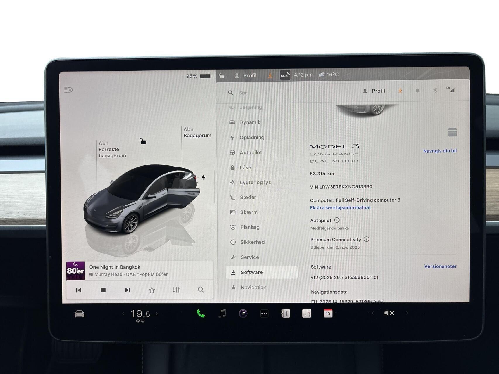 | Aut. forvarmning af batteri, Aut. nedblændeligt bakspejl, Automatgear, Automatisk lys, Automatisk op-/nedblænding, Bakkamera, Bluetooth, Centrallås, DAB radio, Digital instrumentering, El indst. forsæder, El indst. førersæde m. memory, Elektrisk bagklap, El-foldbare spejle m. memory og varme, El-håndbremse, Elruder for/bag, Fartbegrænser, Fartpilot adaptiv, Frontkamera, Håndfri telefon, Klimaanlæg, Kørecomputer, Multifunktionsrat, Musikstreaming via bluetooth, Navigation, Nøglefri døre, Nøglefri start, One pedal drive, Panoramaglastag, Parkeringssensor for/bag, Planlagt forvarmning af kabine, Regnsensor, Sædevarme for/bag, Touchskærm, Trådløs mobilopladning, Udvendig temperaturmåler, Varme i rat, Varmepumpe, 18" Alufælge, Anhængertræk aftageligt, Frunk, Fuld LED forlygter, LED baglygter, LED forlygter, Armlæn, Armlæn bag, Glastag, Højdejusterbart førersæde, Højdejusterbart passagersæde, Kopholder, Læderkabine (Kunstlæder), Splitbagsæde, 3-Faset, Automatisk nedblændeligt bakspejl , Automatisk nødbremsesystem, Blindvinkelassistent, BLIS, Dæktrykssensor, Isofix, Kollisionsadvarsel, Skiltegenkendelse, Træthedsregistrering, Vejbaneassistent, Lane Asisst |