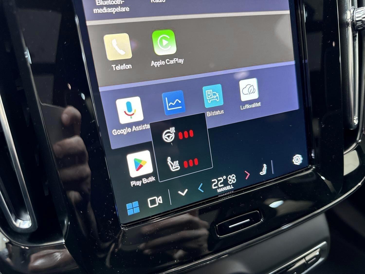 Highlights: ⭐ ULTRA model ⭐ Klimapakke med varme pumpe - ratvarme - varme i for og bagsæder ⭐ 19” Volvo alufælge ⭐ Alcantara indtræk ⭐ 360° kamera inkl. Parkeringskamera i for & bag ⭐ Trådløs mobilopladning - Apple CarPlay & Android Auto ⭐ Aadaptiv fartpilot - Pilot assist - Lane assist - Blindvinkelsassist ⭐ Google navigation ⭐ Google service med stemme styring ⭐ Google Play