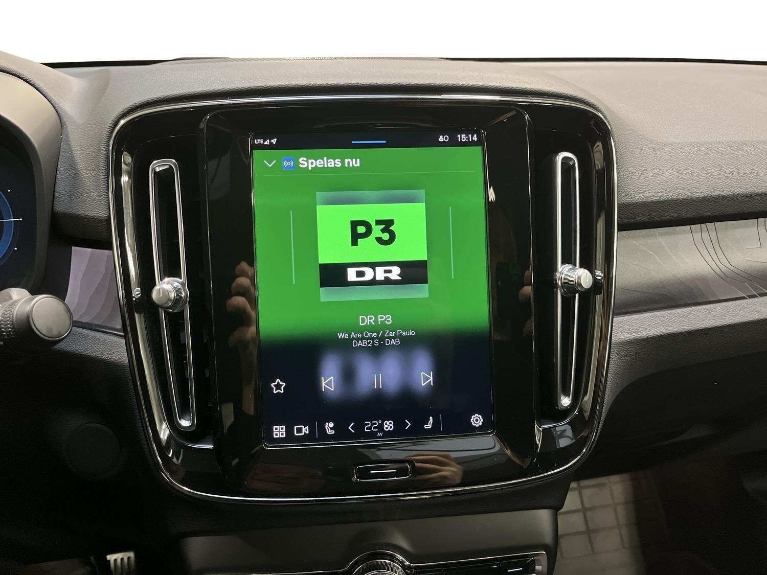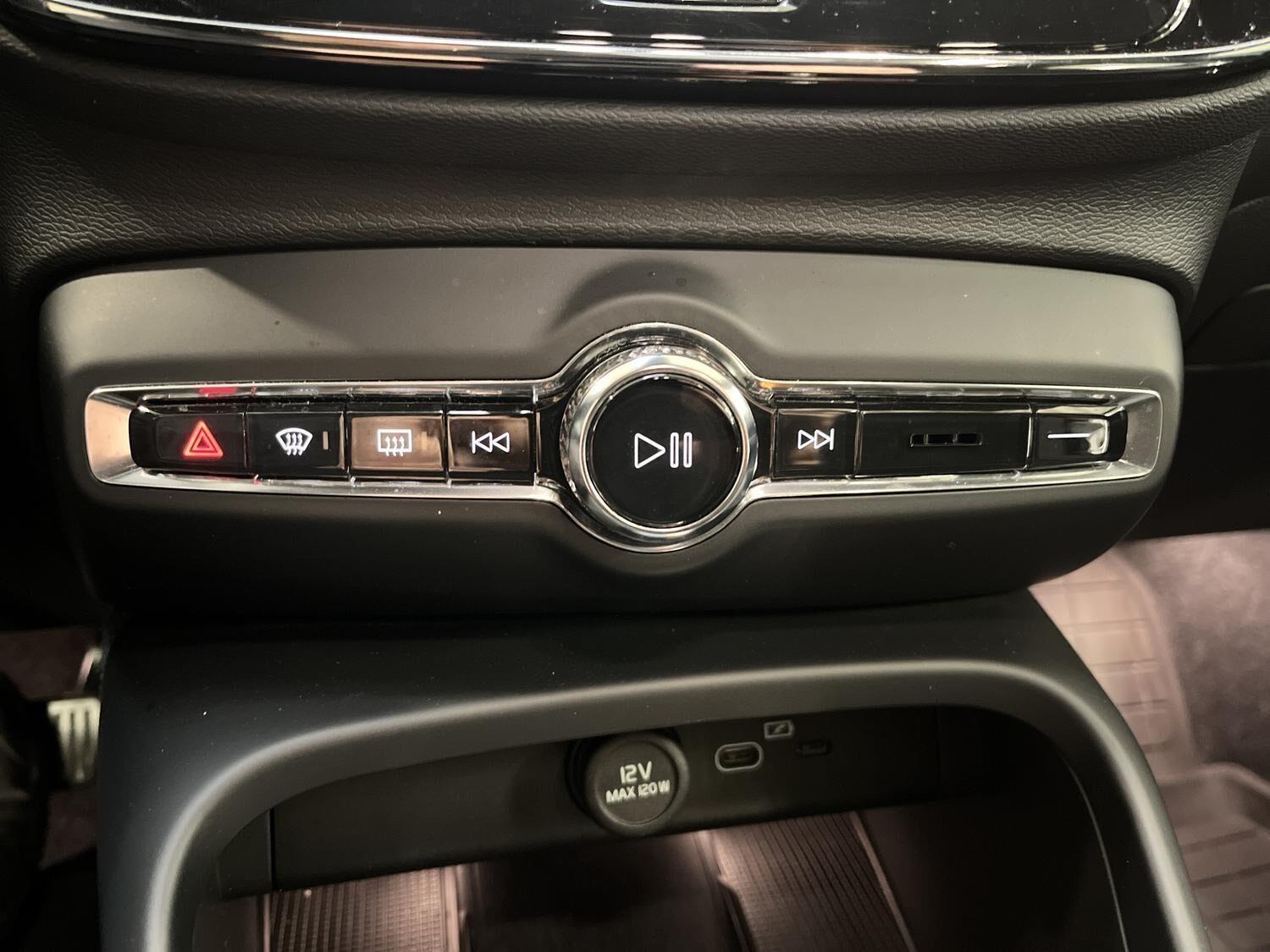 | Apple CarPlay, Automatgear, Aircondition, Automatisk lys, Automatisk op-/nedblænding, Bakkamera, Bluetooth, Centrallås, Digital instrumentering, El indst. førersæde m. memory, El indst. forsæder, El-bagklap med fodsensor, El-forbold spejle m. memory, aut. nedblædning og varme, El-håndbremse, El-justerbar lændestøtte, El-justerbar lændestøtte i forsæder, El-justerbart passagersæde, Elruder for/bag, El-spejle med varme, Fartpilot adaptiv, Fjernbetjent centrallås, Follow Me Home Lys, Harman Kardon anlæg, Håndfri telefon, Klimapakke, Internet, Klimaanlæg 2-zoner, Nøglefri døre, Nøglefri start, Musikstreaming via bluetooth, Navigation, Multifunktionsrat, Panoramaglastag, Parkeringssensor for/bag, Planlagt forvarmning af kabine, Regnsensor, Stemmebetjening, Sædevarme for, Touchskærm, Trådløs mobilopladning, Travel Assist , USB-C, Varme i bagruden, Varme i rat, Varmepumpe, 19" Alufælge, Anhængertræk svingbart (man.), Automatisk fjernlysassistent, DC Hurtiglader, Frunk, Fuld LED forlygter, Kurvelys, LED baglygter, LED forlygter, LED forlygter med fjernlys assistent, LED Kørelys, LED positionslys, LED Tågelygter foran, Spoiler, Tågelygter for/bag, Armlæn bag, Armlæn m. kopholder i bag, Justerbart rat, Kopholder, LED interiørbelysning, Rat m. varme, Splitbagsæde, Adaptiv Fartpilot, Alarm, Auto hold, Automatisk nødbremsesystem, Blindvinkelassistent, Dæktrykssensor, Isofix, Lyssensor, Side-airbag, Skiltegenkendelse, Vejbaneassistent, Volvo On Cal |