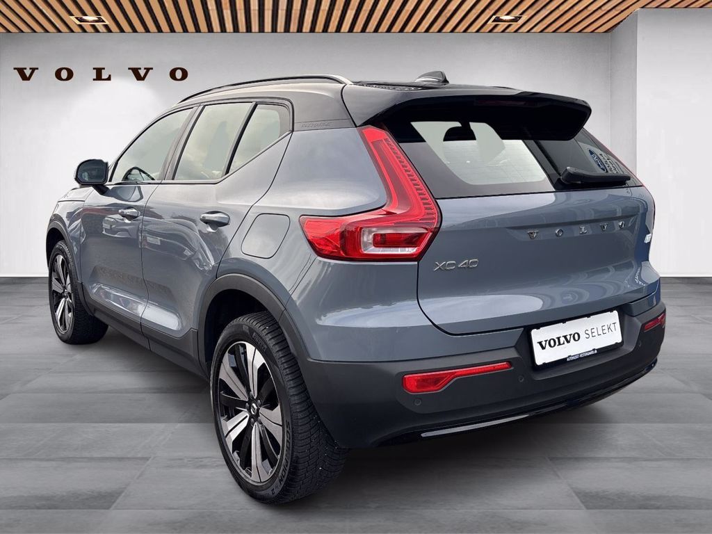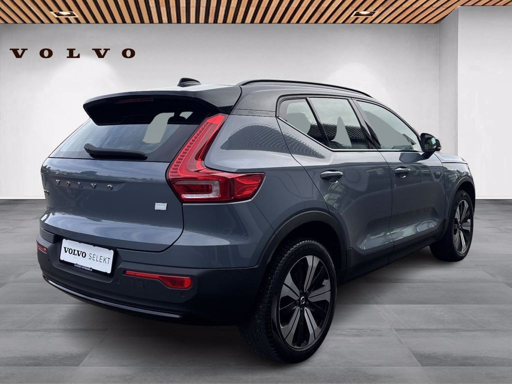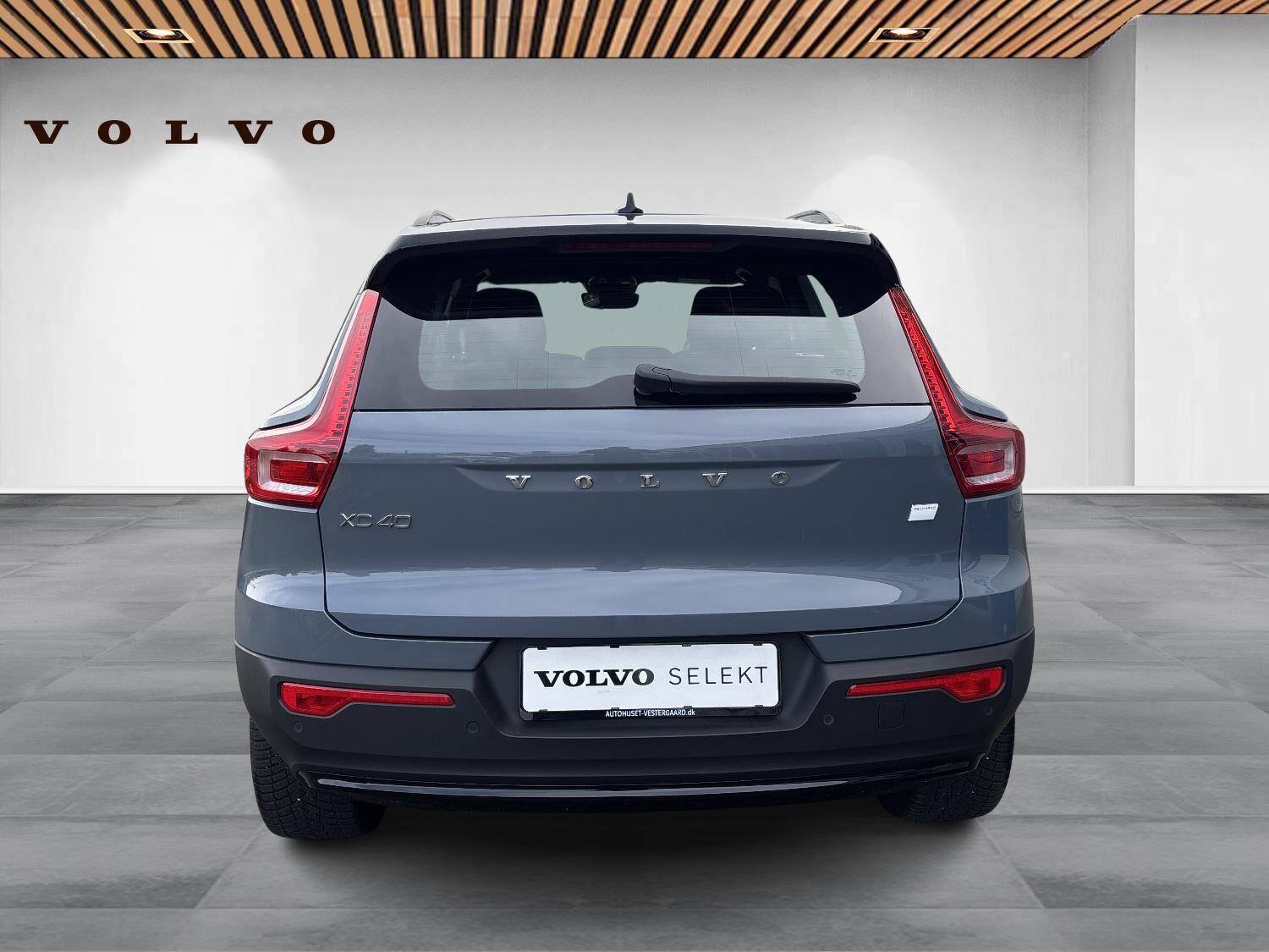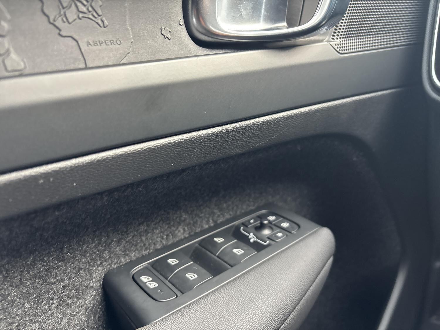 | Apple CarPlay, Automatgear, Automatisk lys, Bakkamera, Bluetooth, Centrallås, DAB radio, Digital instrumentering, El betjente døre, Elektrisk bagklap, El-foldbare spejle, El-håndbremse, El-justerbar lændestøtte, Elruder for/bag, El-spejle, Fartbegrænser, Fartpilot, Fjernbetjent centrallås, Hastighedsbegrænser, Håndfri telefon, Infocenter, Internet, Klimapakke, Klimaanlæg 2-zoner, Kørecomputer, Multifunktionsrat, Musikstreaming via bluetooth, Navigation, Nøglefri døre, Nøglefri start, One pedal drive, Parkeringssensor for/bag, Radio inkl DAB med USB-indgang & Bluetooth, Regnsensor, Servo, Stemmebetjening, Stemmestyring, Sædevarme for/bag, Touchskærm, Trådløs mobilopladning, Udvendig temperaturmåler, USB-C, Varme i rat, Varmepumpe, Volvo On Call, 19" Alufælge, Frunk, LED kørelys, Sort tag , Tagræling, Tågelygter, Armlæn, Fleksibel bagagerumsbund, Justerbart rat, Kopholder, Læderrat (Kunstlæder), Splitbagsæde, ABS, Alarm, Airbag, Auto hold, Dæktrykssensor, Selealarm, Skiltegenkendelse, Google maps, Gummimåtter, Helårsdæk, Hill Assist, Lane Asisst, Vinterhjul kan tilkøbes |