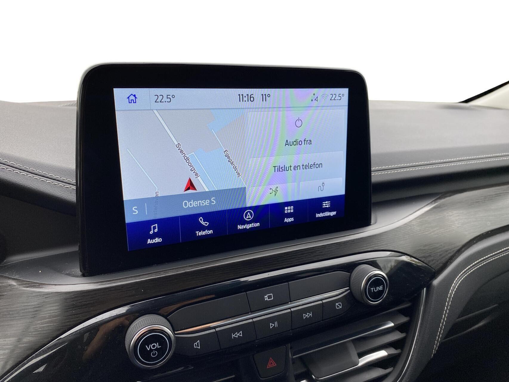 Apple Carplay, Android Auto, Lædersæder • El-bagklap • B&O lydsystem • Mørktonede ruder • Regnsensor • El-foldbare sidepejle • Nøglefri fordøre og start• Automatisk nedblænd af bakspejl • Ambiente belysning • 12,3" digital instrumentering • Bakkamera • 8 vejs-justerbart passagersæde foran • Tagrælinger i sølv • Tågelygter • LED-kørelys og LED-baglygter • Klimaanlæg • Opvarmede forsæder og forrude • Elektronisk parkeringsbremse • Nøglefri start • Lane keeping Aid/Alert • Pre-Collision Assist • MyKey • Fartpilot med fartbegrænser • Elruder for og bag • SYNC3, 8” touchscreen, • Navigation, DAB+, 6 højttalere • 6,5” instrumentering • FordPass Connect Modem • eCall • Parkeringssensor for og bag • Sensico kunstlædeerrat • Drive modes