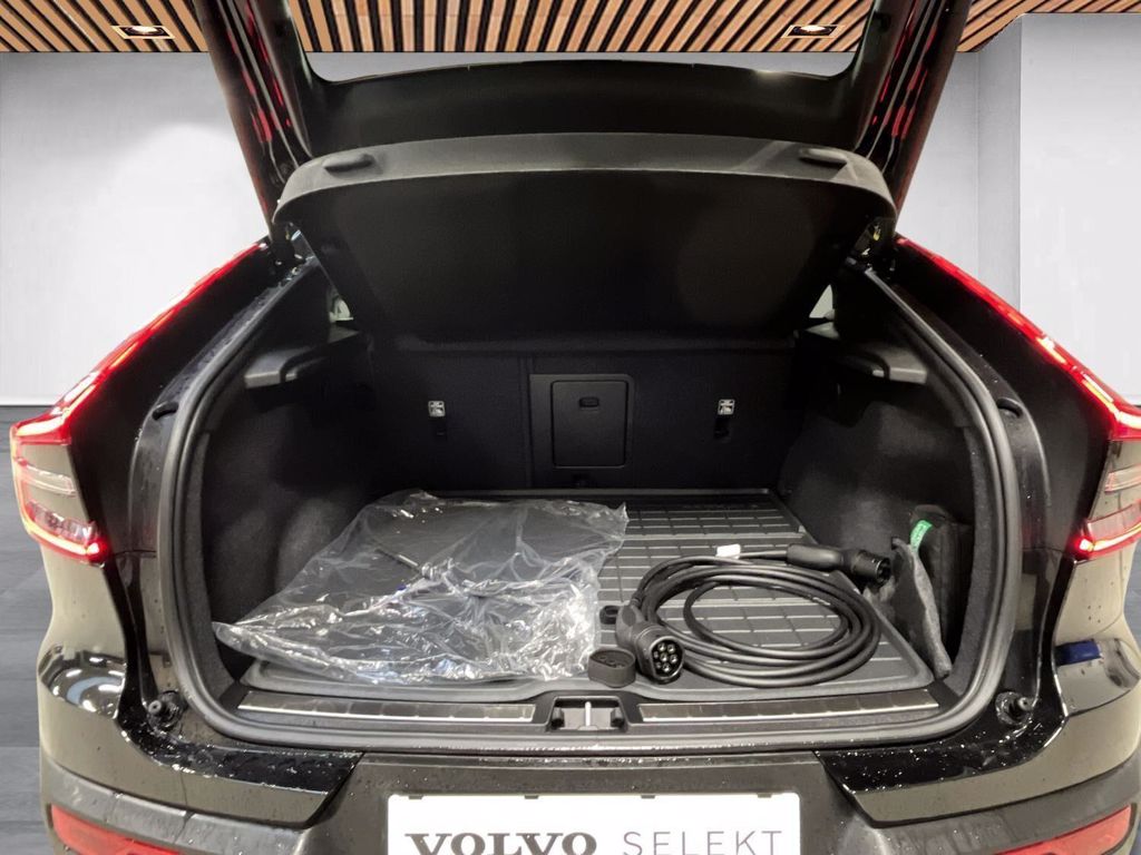| Apple CarPlay, Aut. nedblændeligt bakspejl, Automatisk op-/nedblænding, Automatisk lys, Bakkamera, Bluetooth, Centrallås, DAB radio, Digital instrumentering, El-bagklap med fodsensor, El indst. førersæde m. memory, El-forbold spejle m. memory, aut. nedblædning og varme, El-håndbremse, Elruder for/bag, El-spejle, Fartbegrænser, Fartpilot adaptiv, Fjernbetjent centrallås, Frontkamera, Hastighedsbegrænser, Håndfri telefon, Infocenter, Internet, Klimapakke, Klimaanlæg 2-zoner, Kørecomputer, Multifunktionsrat, Navigation, Musikstreaming via bluetooth, Nøglefri døre, Nøglefri start, Panoramaglastag, Parkeringssensor for/bag, Regnsensor, Servo, Stemmestyring, Sædevarme for/bag, Touchskærm, Trådløs mobilopladning, Udvendig temperaturmåler, USB-C, Varme i bagruden, Varme i bagsæde, Varme i rat, Varmepumpe, Varmepumpe , Volvo On Call, 20" Alufælge, DC Hurtiglader, Frunk, Fuld LED forlygter, LED baglygter, LED forlygter, LED kørelys, LED Kørelys, Metallak, Mørktonede ruder bag, Armlæn, Armlæn bag, Bagagerumsdækken, Glastag, Højdejusterbart passagersæde, Justerbart rat, Kopholder, LED interiørbelysning, Læderrat (Kunstlæder), Multijusterbart rat, Mørk loftbeklædning, Rat m. varme, Sort himmel, Splitbagsæde, Stofindtræk, Trådløs opladning af smartphone, 360 gr. View kamera, 360 graders kamera, 3-Faset, ABS, Adaptiv Fartpilot, Afstandsradar, Airbag, Alarm, Antispin, Blindvinkelassistent, BLIS, Fører-airbag, Isofix, Lyssensor, Selealarm, Skiltegenkendelse, Træthedsregistrering, Vejbaneassistent |