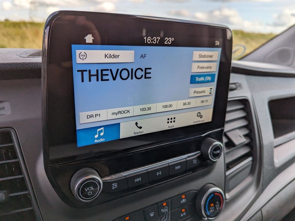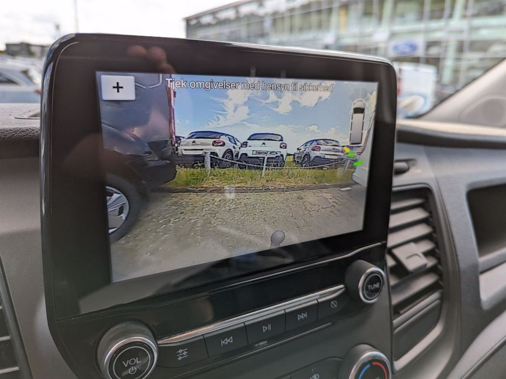 Aircondition med pollenfilter, fartpilot/hastighedsbegrænser, programmerbar motor-/kabinevarmer integreret i instrumenteringen, parkeringssensor for/bag, halogenforlygter med statisk kurvelys, tågelygter, LED kørelys med velkommen-hjem belysning – forsinket slukning af forlygter, el-justerbare og opvarmede sidespejle med eliminering af blinde vinkler og integreret blinklys, indfarvet forkofanger, Quickclear opvarmet forrude, tripcomputer, gearskifteindikator, 8-vejs justerbar førersæde med lændestøtte/armlæn og sædevarme, passagerbænk med opbevaring under og foldebord, multijusterbart læderrat, 2 stk. kopholdere, 2 liters flaskeholdere, aflåseligt handskerum med plads til A4 mappe, 2 stk. 12 V udtag i kabinen, fordøre med lommer til opbevaring, opbevaringsrum på instrumentbordet, kabinelys i loftet, rengøringsvenlig gummibeklædning i kabinen, plastik bund i varerum, skydedør i højre side af varerummet, sidehængslede bagdøre med 180 graders åbning, belysning i varerum, adskillelse i stål med rude og lastluge, 8 stk. surringskroge i varerummet, el-betjente sideruder med et-tryks funktion i førerside, Ford Eco Mode – førerinformation, 80 liters brændstoftank – 21 liters Adblue tank, fjernbetjent centrallås, autolås – dørene genlåses efter 45 sekunder og dørene låses ved hastighed over 8 km/t, airbag på førersæde, 3-punktsseler på alle siddepladser, start/stop teknologi, bakkestartassistance (HSA), automatisk lastkompensering (LAC), ABS bremser med Electronic Brake-force Distribution, Roll Stability Control, Curve Control – nedsætter motoromdrejninger og bremser ved overstyring, elektronisk stabilitets kontrol (ESC) med Traction Control og nødbremseassitent (EBA), nødbremse advarsel, elektronisk servostyring, Heavy Duty generator 165 amp, dobbelt start- og forbrugsbatteri, stænkklapper for/bag, hjulkapsler, dieselpartikelfilter, reservehjul.