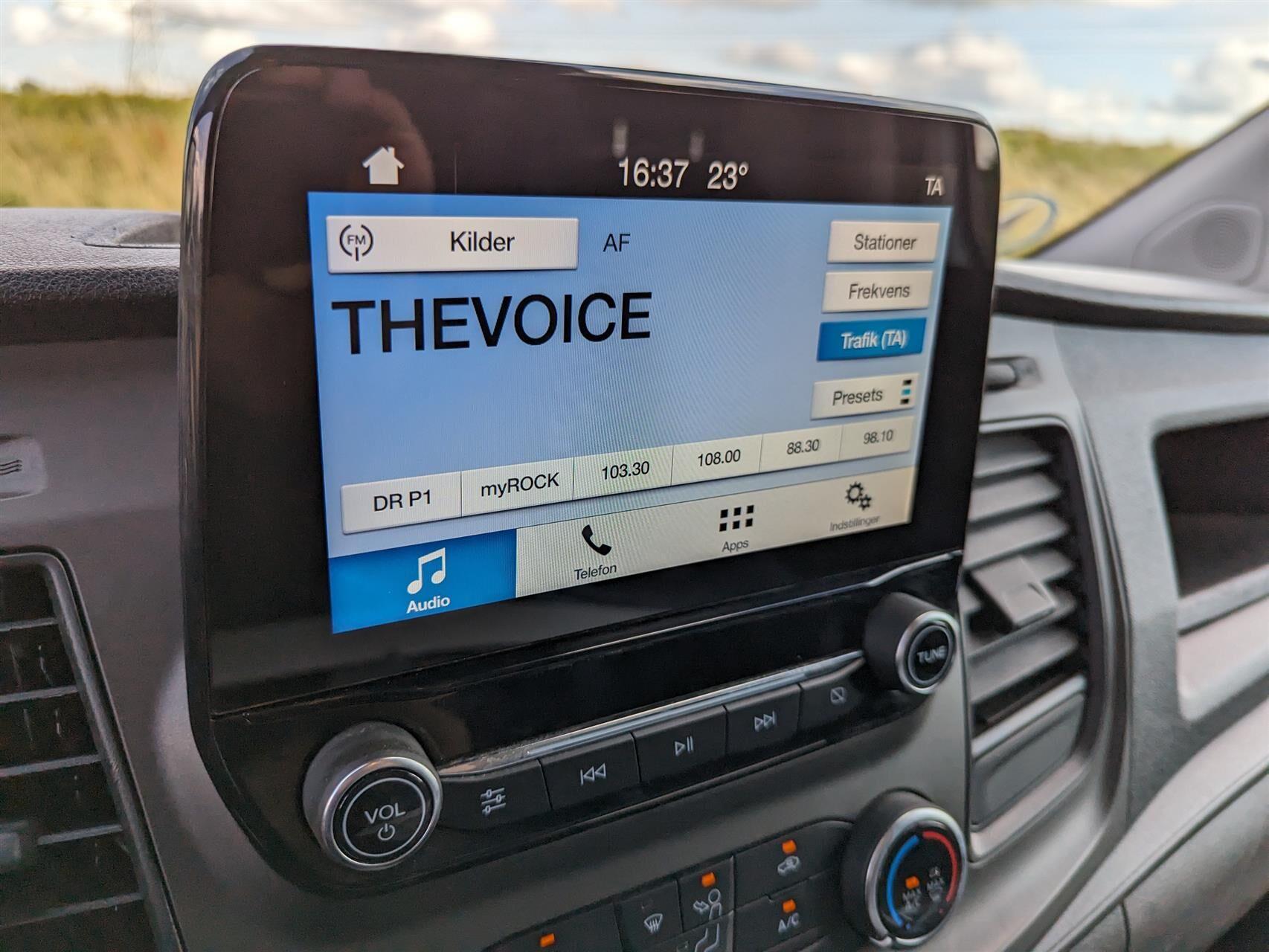 Fører assistancepakke (Radio med Sync 2,5 (8” farve touchskærm, DAB radio, Android Auto/Apple CarPlay, talestyring, 4 højtalere, AUX stik, USB stik, bluetooth til telefoni og audiostreaming, samt Fords automatiske nødopkald ved ulykke), udsynspakke (el-foldbare sidespejle, regn- og lyssensor), bakkamera, træthedsregistrering, Lane Departure Alert og automatisk fjernlys)