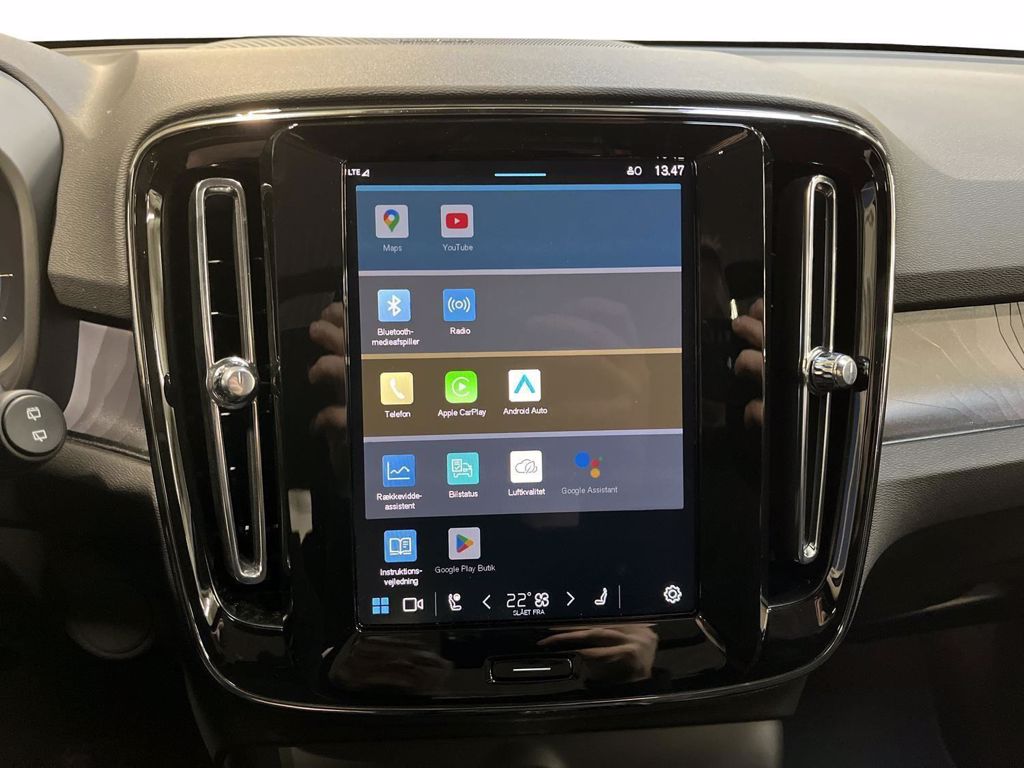 | Aircondition, Android Auto, Apple CarPlay, Aut. nedblændeligt bakspejl, Automatgear, Automatisk op-/nedblænding, Bakkamera, Bluetooth, Centrallås, DAB radio, DAB+ radio, Digital instrumentering, Elektrisk bagklap, El-foldbare spejle, El-foldbare spejle m. varme, El-håndbremse, Elruder for, Elruder for/bag, El-spejle, El-spejle med varme, Fartpilot adaptiv, Fjernbetjent centrallås, Håndfri telefon, Klimapakke, Klimaanlæg, Klimaanlæg 2-zoner, Musikstreaming via bluetooth, Navigation, Nøglefri døre, Nøglefri start, Parkeringssensor bag, Parkeringssensor for, Parkeringssensor for/bag, Radio, Regnsensor, Servo, Sædevarme for, Touchskærm, Udvendig temperaturmåler, USB stik, Varme i rat, Volvo On Call, 19" Alufælge, Alufælge, LED baglygter, LED forlygter, LED forlygter med fjernlys assistent, LED kørelys, LED positionslys, Metallak, Mørktonede ruder bag, Sort tag , Tonede ruder, Tågelygter, Alcantara , Armlæn, Dellæder kabine, Højdejusterbart førersæde, Højdejusterbart passagersæde, Justerbart rat, Kopholder, Læderrat, Rat m. varme, 3-Faset, ABS, Afstandsradar, Airbag, Alarm, Antispin, BLIS, ESP, Lyssensor, Isofix, Selealarm, Startspærre, Vejbaneassistent, Volvo On Cal, 3-faset ladning, A/C, Aktiv Fartpilot, Elektrisk parkeringsbremse, Google maps, Lane Asisst, Nøglefri betjening , Parkeringssensor, Virtuelt cockpit, panoramaglastag |