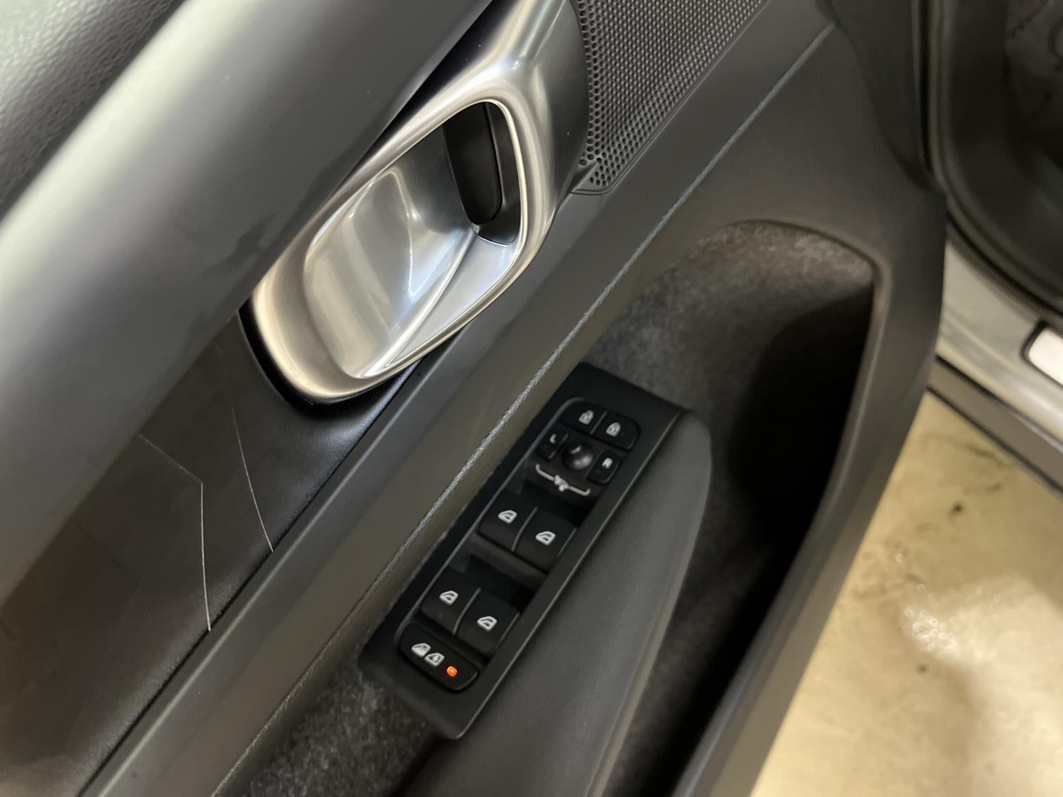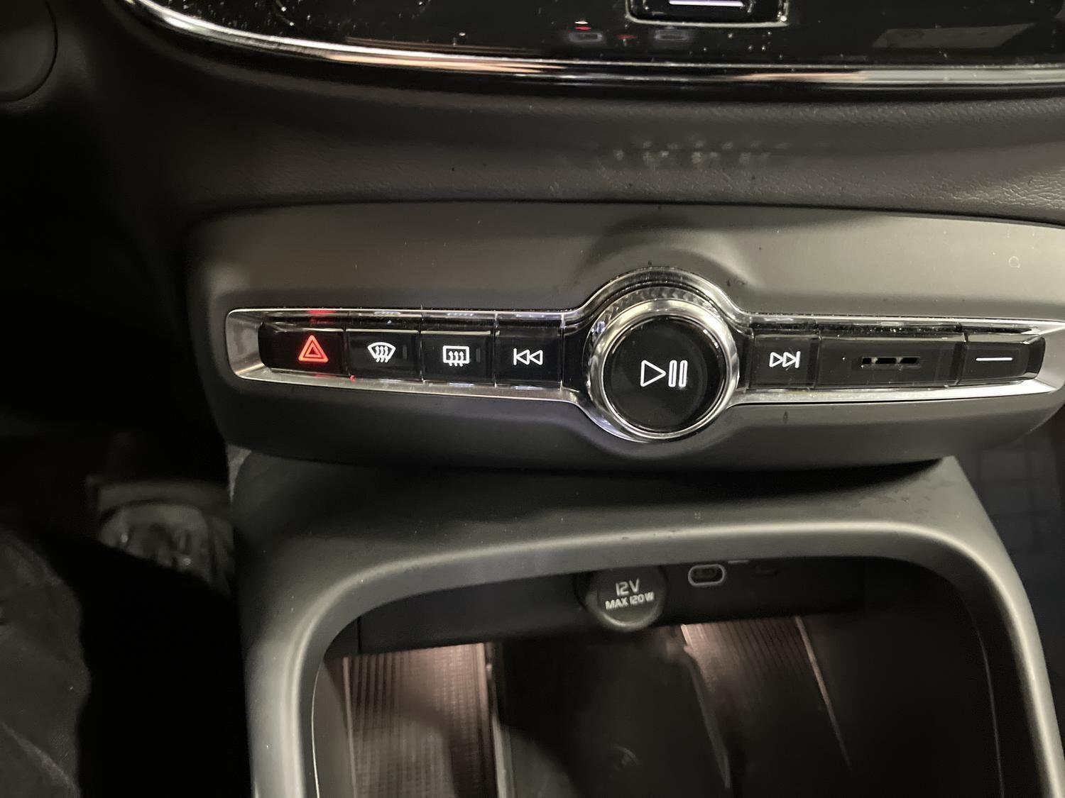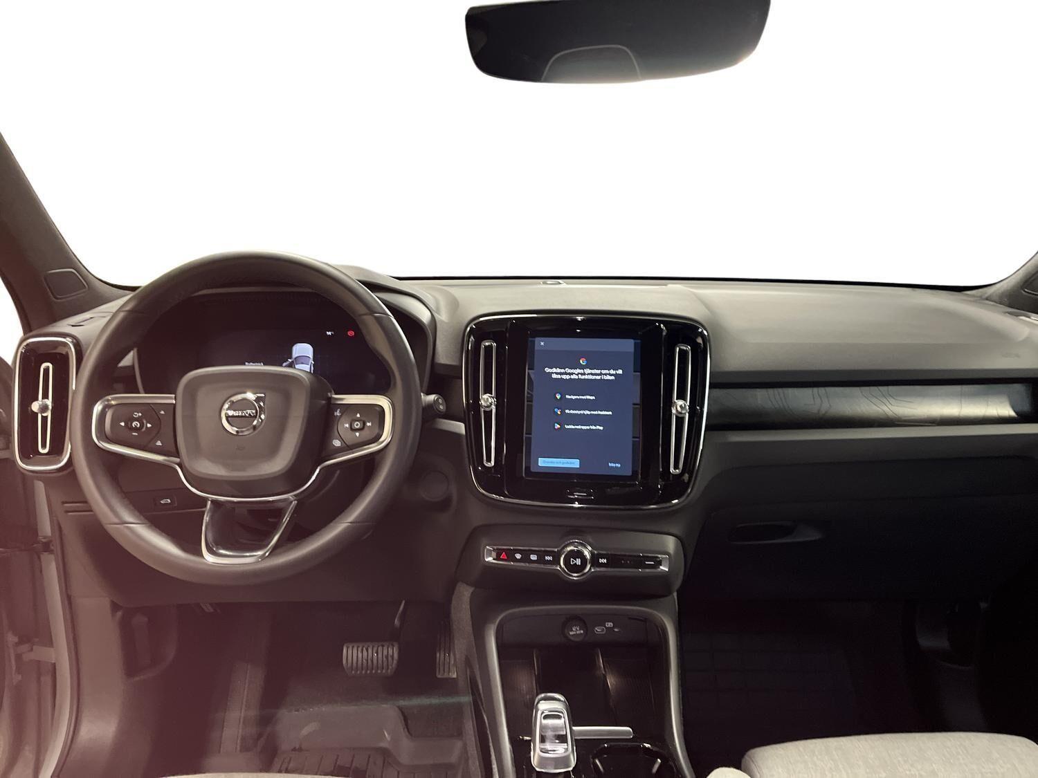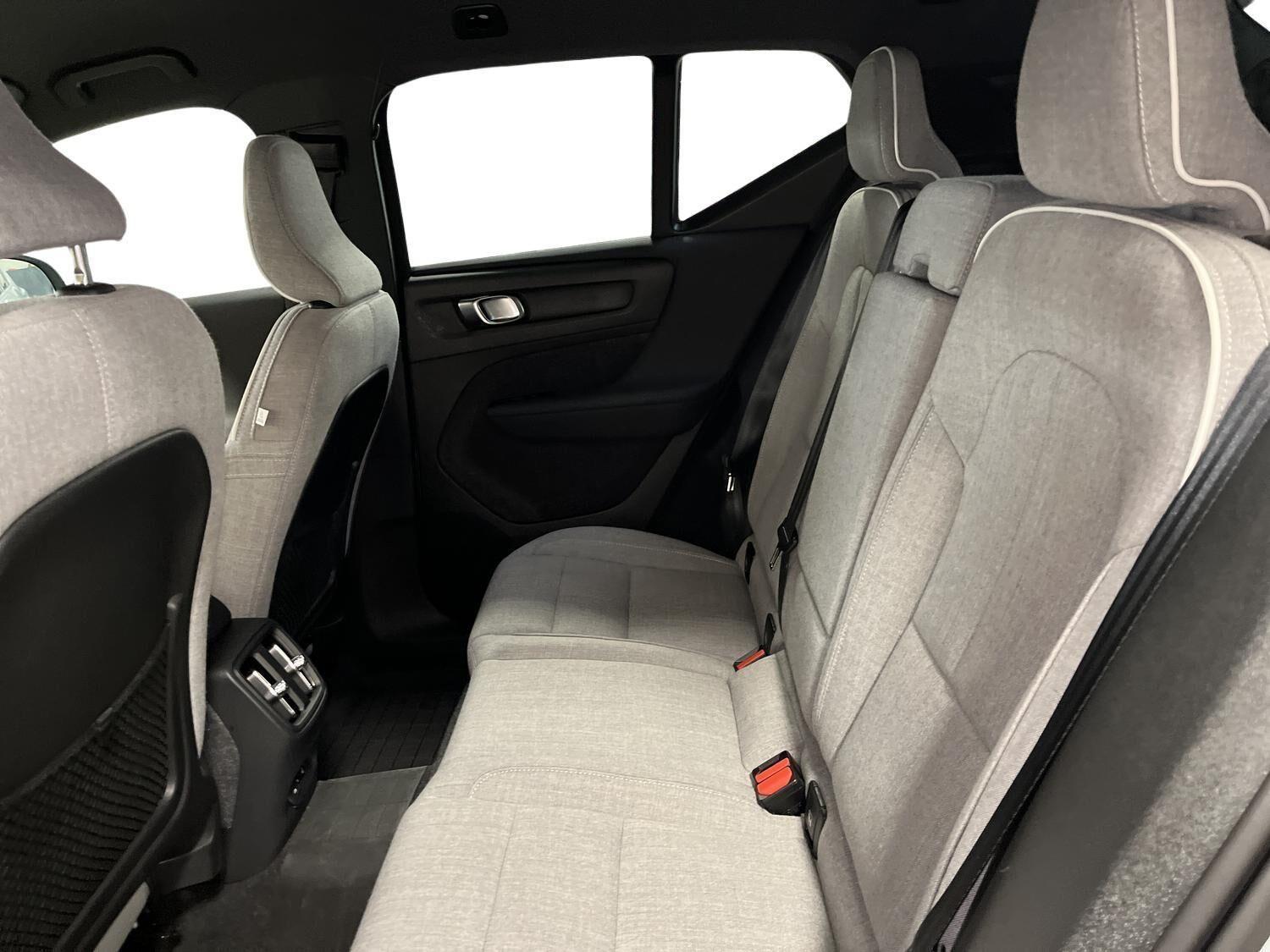 | Apple CarPlay, Automatgear, Aut. nedblændeligt bakspejl, Automatisk op-/nedblænding, Bakkamera, Bluetooth, Centrallås, Digital instrumentering, El-bagklap med fodsensor, El-foldbare spejle, El-håndbremse, El-justerbar lændestøtte i forsæder, El-justerbart passagersæde, Elruder for/bag, Fartpilot adaptiv, Håndfri telefon, Indstigningslys, Internet, Klimaanlæg 2-zoner, Musikstreaming via bluetooth, Navigation, Nøglefri døre, Nøglefri start, One pedal drive, Parkerings assistent, Planlagt forvarmning af kabine, Regnsensor, Stemmebetjening, Sædevarme for, Trådløs mobilopladning, Udvendig temperaturmåler, USB-C, Varme i rat, Varmepumpe, Varme i bagruden, 19" Alufælge, Adaptive forlygter, Alufælge, DC Hurtiglader, Frunk, LED baglygter, LED forlygter, LED kørelys, LED positionslys, Tonede ruder, Armlæn, Armlæn bag, Fartbegrænser, Justerbart rat, Kopholder, Trådløs opladning af smartphone, 360 graders kamera, Adaptiv Fartpilot, Alarm, Airbag, Antispin, Auto hold, Automatisk aktivering af nær/fjernlys, Automatisk låsning af døre under kørsel, Automatisk nødopkald, Automatisk nødbremsesystem, BLIS, Dæktrykssensor, Fører-airbag, Gardin-airbag, Intelli. hastighedsassistent, Isofix, Kollisionsadvarsel, Lyssensor, Passager-airbag, Real time traffic, Selealarm, Selestrammer, Side-airbag, Skiltegenkendelse, Vejbaneassistent, Volvo On Cal |