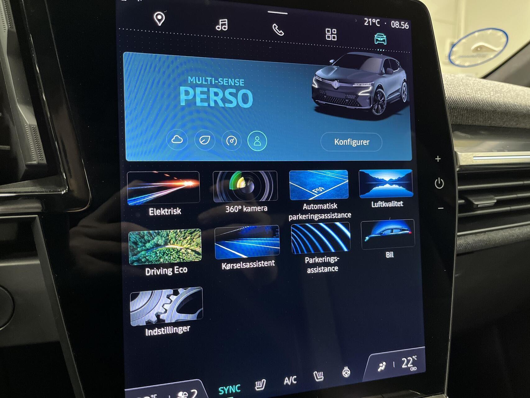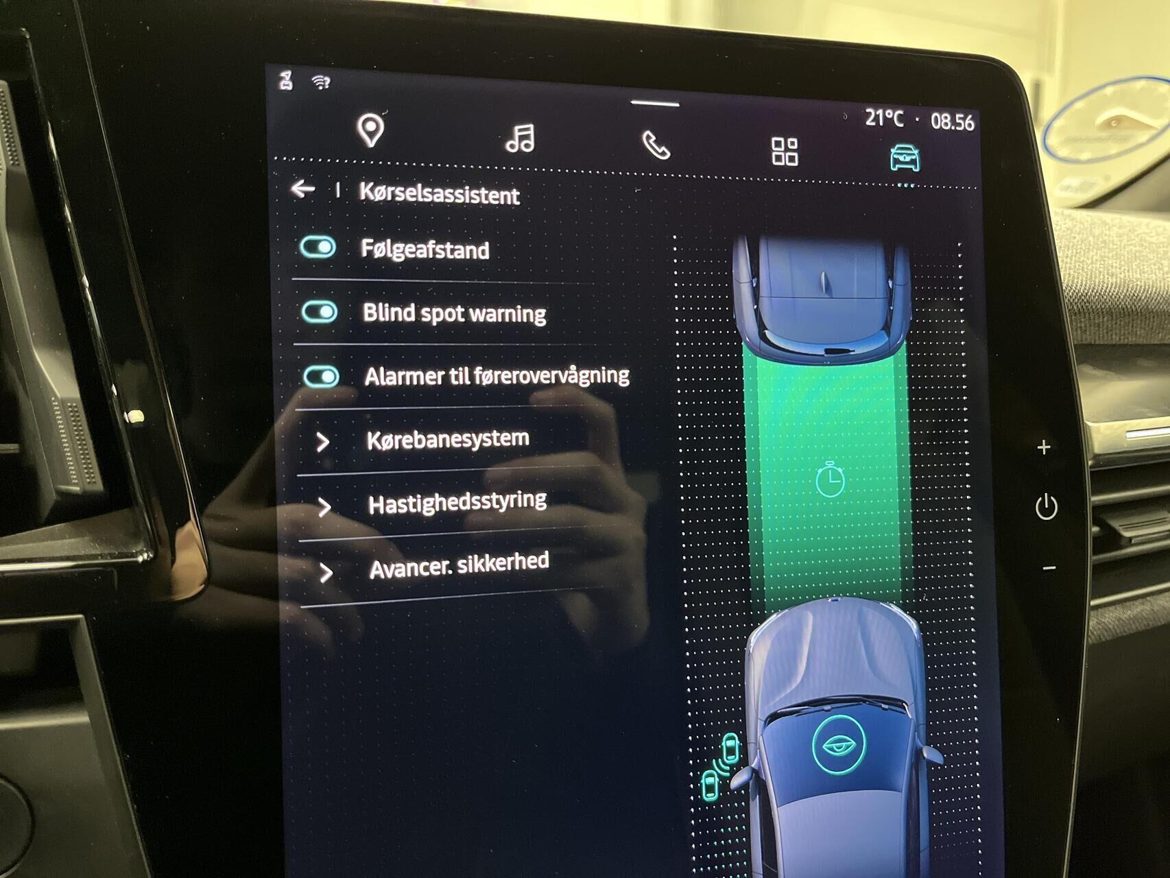 | Android Auto, Apple CarPlay, Aut. nedblændeligt bakspejl, Automatgear, Automatisk lys, Automatisk op-/nedblænding, Bakkamera, Bluetooth, Centrallås, DAB radio, Digital instrumentering, El-foldbare spejle, El-håndbremse, Elruder for/bag, Fartbegrænser, Fartpilot adaptiv, Frontkamera, Håndfri telefon, Klimaanlæg 2-zoner, Kørecomputer, Multifunktionsrat, Musikstreaming via bluetooth, Navigation, Nøglefri døre, Nøglefri start, Parkeringssensor for/bag, Regnsensor, Sædevarme for, Touchskærm, Trådløs mobilopladning, Udvendig temperaturmåler, Varme i rat, 20" Alufælge, LED baglygter, LED forlygter, LED kørelys, Mørktonede ruder bag, Armlæn, Højdejusterbart passagersæde, Højdejusterbart førersæde, Læderrat, Sort himmel, Splitbagsæde, 3-Faset, 360 graders kamera, Automatisk nødbremsesystem, Blindvinkelassistent, BLIS, Dæktrykssensor, Isofix, Kollisionsadvarsel, Skiltegenkendelse, Træthedsregistrering, Vejbaneassistent, Lane Asisst |