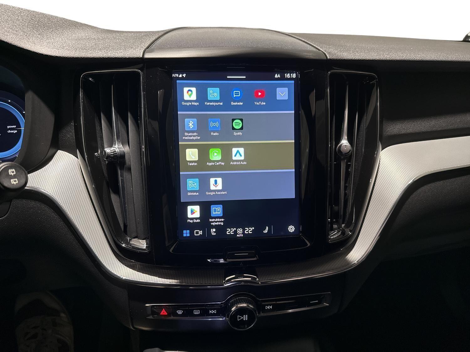 | Whiplas protection, Gardin-airbag, Sidekollisionsbeskyttelse, Intelligent Driver Information System, Isofix, Regnsensor, Multifunktionsrat, Fugtighedssensor, Start/stop-system, Bluetooth, 360 graders kamera, Apple CarPlay, Contour forsæder, 9" midterdisplay, Krystal-gearstang, Klimaanlæg 2-zoner, Knæairbag, førerside, Panoramaglastag, Skiltegenkendelse, Vejbaneassistent, LED forlygter, Lygtevasker, DAB+ radio, High Performance audio system, El-foldbare spejle, El-justerbart passagersæde m. memory, Trådløs mobilopladning, 12″ førerdisplay, Google Services, Adaptiv Fartpilot, Pilot Assist, USB-C tilslutning, Hastighedsbegrænser, Volvo Cars-app, Subwoofer, Tyverialarm, Elbetjent barnelås, Elektrisk bagklap, Nøglefri adgang og håndfri åbning af bagklap, Tonede ruder, BLIS, Stemmestyring, Armlæn bag, Delkunstlæderindtræk, El indst. førersæde m. memory, Sædevarme for/bag, 5 sæder, El-justerbar lændestøtte, Bagagerumsdækken, Automatisk nedblændeligt bakspejl , 20" Alufælge, Hill Assist, Servo, Varme i rat, Slippery Road Alert, sportsrat, Opvarmede viskerblade, Park Assist |