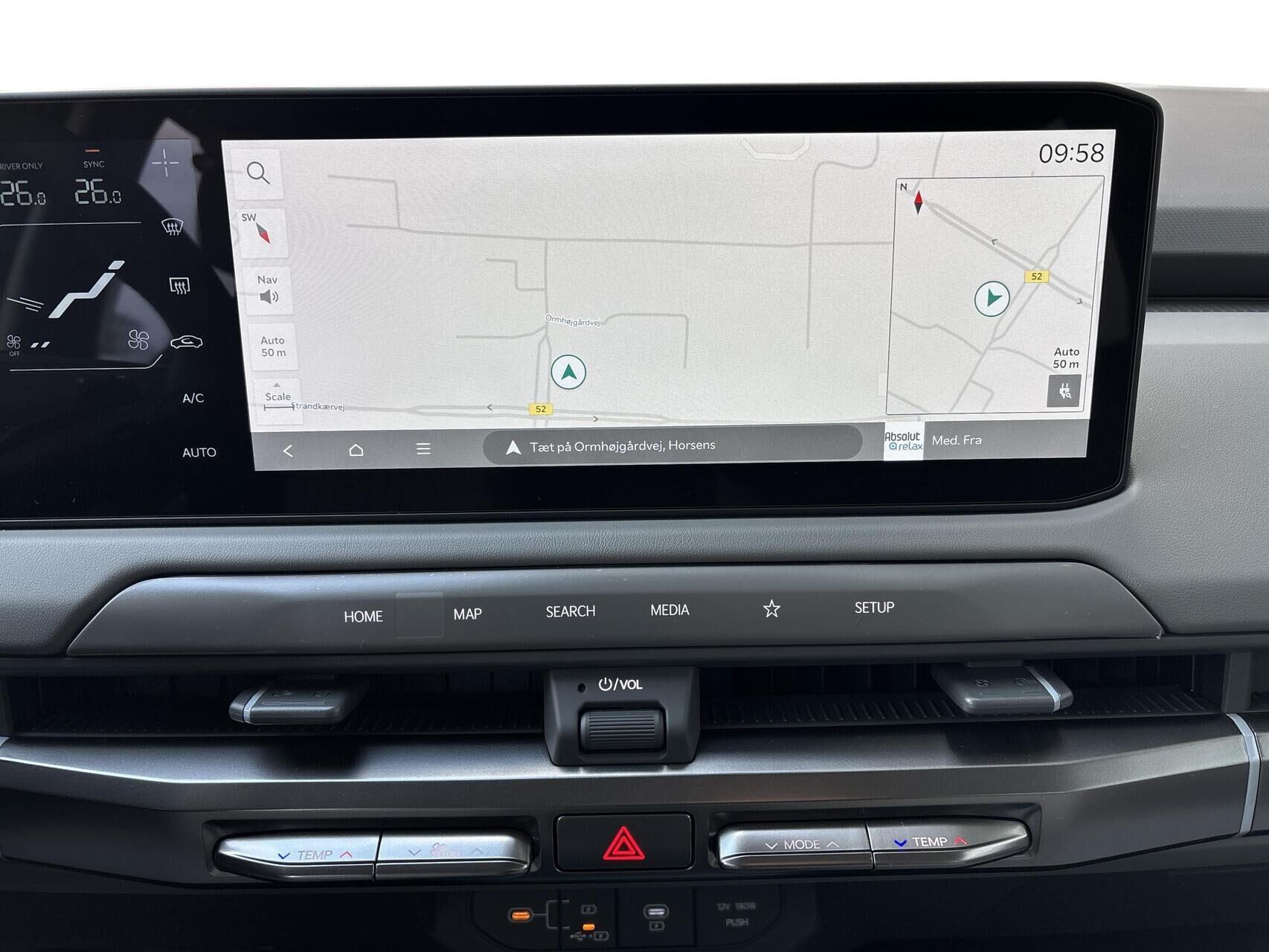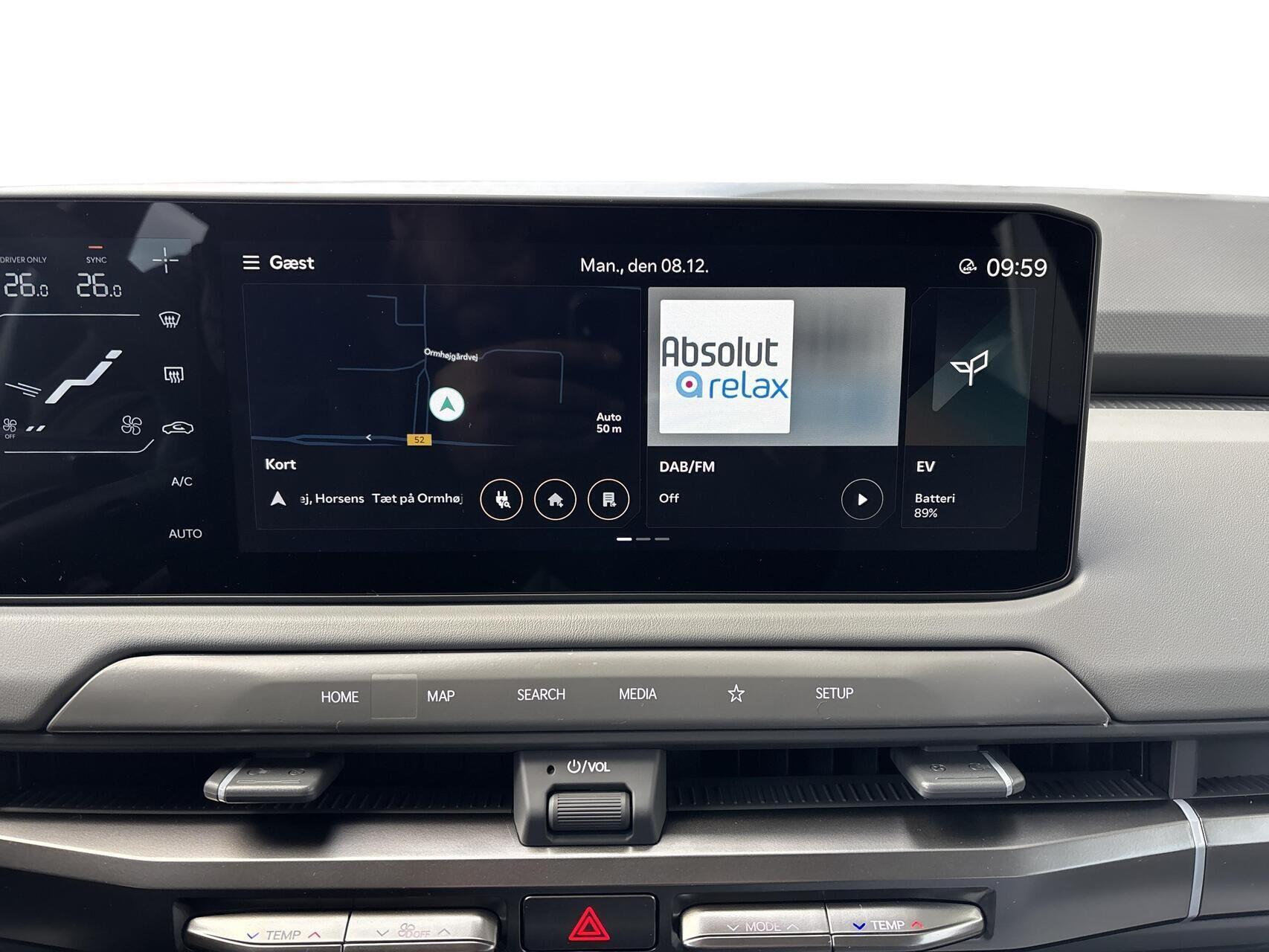| Android Auto, Apple CarPlay, Automatgear, Automatisk lys, Bakkamera, Bluetooth, Centrallås, DAB radio, Digital instrumentering, El indst. forsæder, Elruder for/bag, El-spejle, Fartbegrænser, Fartpilot adaptiv, Håndfri telefon, Infocenter, Klimaanlæg 2-zoner, Multifunktionsrat, Musikstreaming via bluetooth, Navigation, Nøglefri døre, Nøglefri start, Parkeringssensor for/bag, Radio, Regnsensor, Stemmebetjening, Stemmestyring, Touchskærm, Udvendig temperaturmåler, USB-C, Varme i bagruden, Alufælge, DC Hurtiglader, LED kørelys, Armlæn, Kopholder, Højdejusterbart førersæde, Multijusterbart rat, Splitbagsæde, ABS, Afstandsradar, Airbag, Alarm, Antispin, Auto hold, Dæktrykssensor, ESP, Isofix, Selealarm |