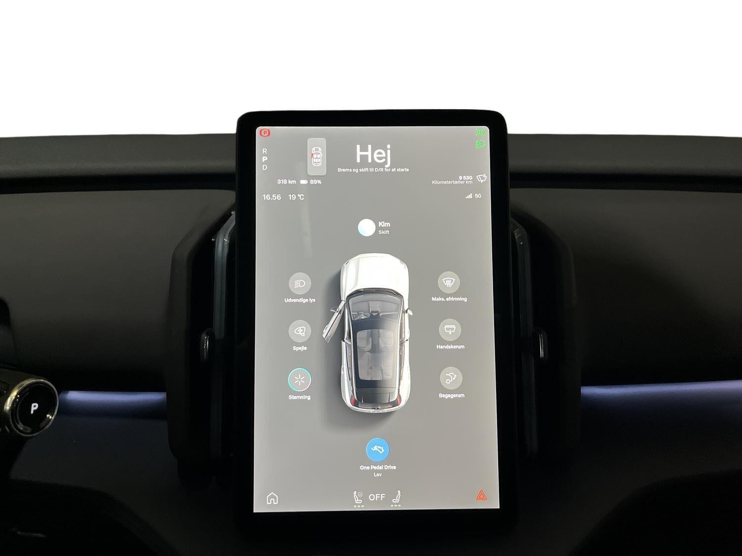 | Android Auto, Apple CarPlay Wireless, Automatgear, Automatisk lys, Bakkamera, Bluetooth, Centrallås, DAB radio, Digital instrumentering, El indst. forsæder, El indst. førersæde, El indst. førersæde m. memory, Elektrisk bagklap, El-foldbare spejle, El-foldbare spejle m. varme, El-foldbare spejle m. memory og varme, El-håndbremse, El-justerbar lændestøtte, El-justerbar lændestøtte i forsæder, El-justerbart passagersæde, El-justerbart passagersæde m. memory, Elruder for/bag, El-spejle med varme, Fartbegrænser, Fartpilot, Fartpilot adaptiv, Frontkamera, Harman Kardon anlæg, Håndfri telefon, Infocenter, Internet, Klimaanlæg 2-zoner, Kørecomputer, Multifunktionsrat, Musikstreaming via bluetooth, Nøglefri døre, Nøglefri start, One pedal drive, Panoramaglastag, Parkeringssensor for/bag, Regnsensor, Servo, Stemmebetjening, Stemmestyring, Sædevarme for, Touchskærm, Trådløs mobilopladning, Udvendig temperaturmåler, USB-C, Varme i rat, Varmepumpe, 19" Alufælge, Frunk, LED kørelys, Tågelygter, Armlæn, Ambiente belysning, Delkunstlæderindtræk, Fleksibel bagagerumsbund, Justerbart rat, Justerbar lændestøtte, Kopholder, Splitbagsæde, Trådløs opladning af smartphone, ABS, Adaptiv Fartpilot, Afstandsradar, Airbag, Alarm, Antispin, Automatisk nødbremsesystem, Automatisk nedblændeligt bakspejl , Automatisk nødopkald, Blindvinkelassistent, Dæktrykssensor, ESP, BLIS, Isofix, Kollisionsadvarsel, Park Assist, Selealarm, Skiltegenkendelse, Træthedsregistrering, Volvo On Call, Vejbaneassistent, 360° kamera, Google maps, Volvo Cars-app |