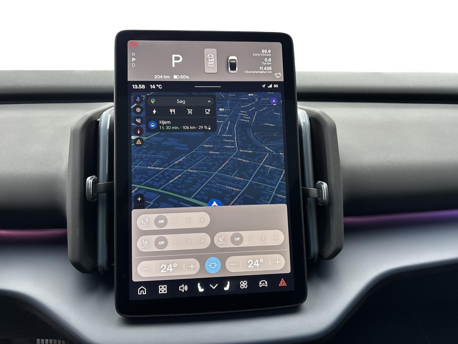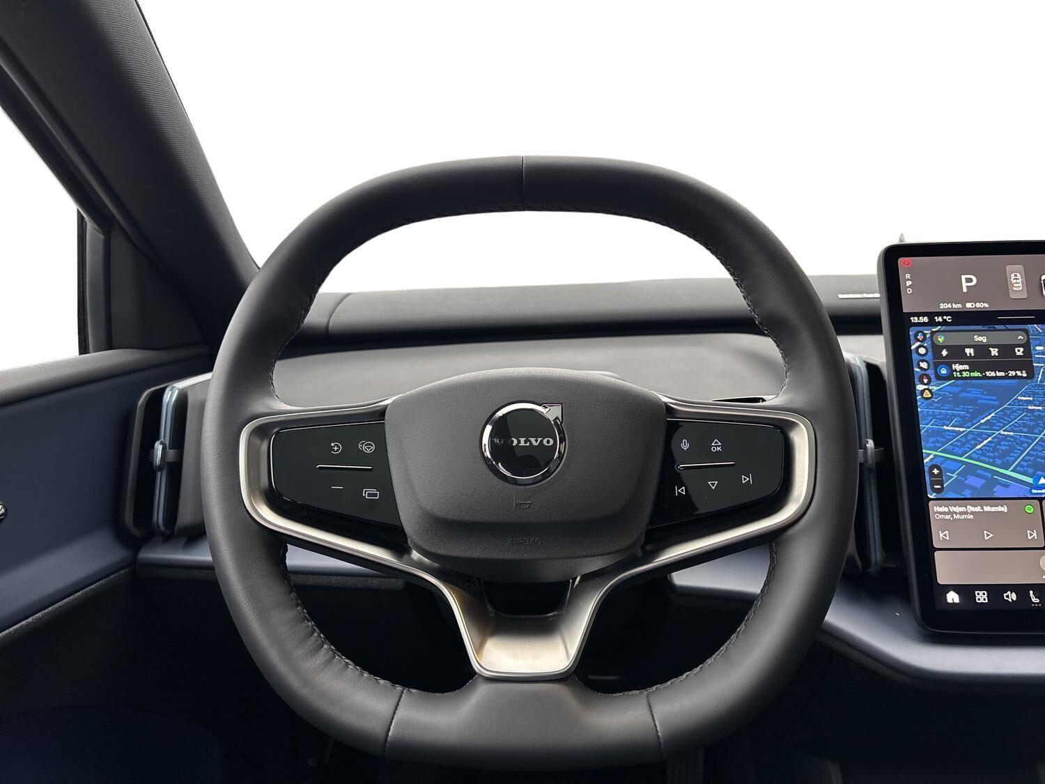 | Active Steering Assist , Android Auto, Apple CarPlay Wireless, Automatgear, Automatisk lys, Bakkamera, Bluetooth, Centrallås, DAB radio, Digital instrumentering, El indst. forsæder, El indst. førersæde, El indst. førersæde m. memory, Elektrisk bagklap, El-foldbare spejle, El-foldbare spejle m. memory og varme, El-foldbare spejle m. varme, El-håndbremse, Elruder for/bag, El-justerbar lændestøtte, El-justerbart passagersæde, El-justerbar lændestøtte i forsæder, El-justerbart passagersæde m. memory, El-spejle med varme, Fartbegrænser, Fartpilot, Fartpilot adaptiv, Frontkamera, Harman Kardon anlæg, Håndfri telefon, Infocenter, Internet, Klimaanlæg 2-zoner, Kørecomputer, Multifunktionsrat, Musikstreaming via bluetooth, Navigation, Nøglefri døre, Nøglefri start, One pedal drive, Panoramaglastag, Parkeringssensor for/bag, Radio inkl DAB med USB-indgang & Bluetooth, Regnsensor, Servo, Stemmebetjening, Stemmestyring, Sædevarme for, Touchskærm, Trådløs mobilopladning, Udvendig temperaturmåler, USB-C, Varme i rat, Varmepumpe, 19" Alufælge, Frunk, LED kørelys, Mørktonede ruder bag, Tågelygter, Ambiente belysning, Armlæn, Fleksibel bagagerumsbund, Justerbart rat, Justerbar lændestøtte, Kopholder, Rat m. varme, Splitbagsæde, Trådløs opladning af smartphone, ABS, Afstandsradar, Adaptiv Fartpilot, Airbag, Alarm, Antispin, Automatisk nedblændeligt bakspejl , Automatisk nødbremsesystem, Automatisk nødopkald, Blindvinkelassistent, BLIS, Dæktrykssensor, ESP, Isofix, Kollisionsadvarsel, Selealarm, Skiltegenkendelse, Træthedsregistrering, Vejbaneassistent, Volvo On Call, 360° kamera, ESC, Google maps, Volvo Cars-app |