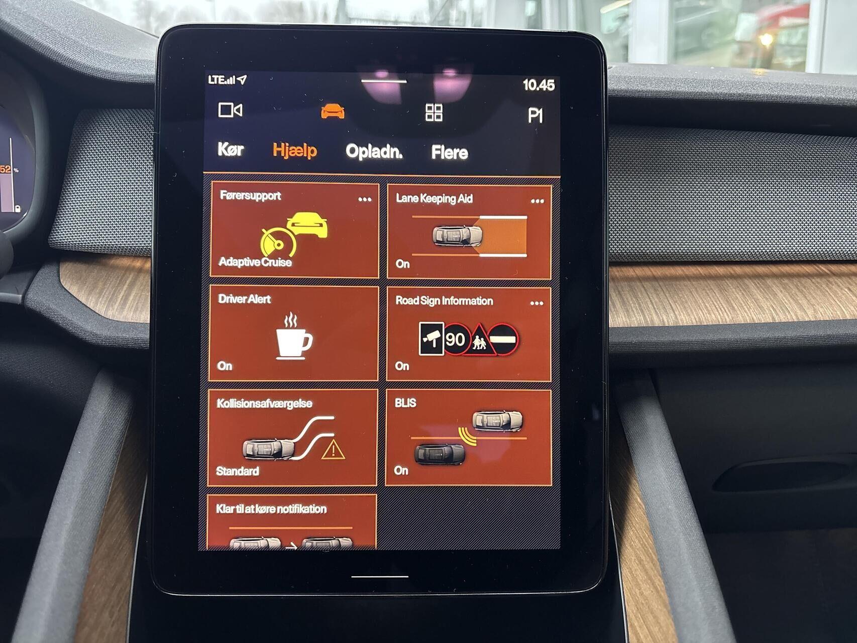 | Android Auto, App integration, Aut. nedblændeligt bakspejl, Automatgear, Automatisk lys, Automatisk op-/nedblænding, Bakkamera, Bluetooth, Centrallås, DAB radio, Digital instrumentering, El indst. forsæder, El indst. førersæde m. memory, Elektrisk bagklap, El-foldbare spejle m. varme, El-håndbremse, Elruder for/bag, Fartbegrænser, Fartpilot adaptiv, Frontkamera, Harman Kardon anlæg, Håndfri telefon, Klimaanlæg 2-zoner, Kørecomputer, Multifunktionsrat, Musikstreaming via bluetooth, Navigation, Nøglefri døre, Nøglefri start, One pedal drive, Panoramaglastag, Parkeringssensor for/bag, Planlagt forvarmning af kabine, Regnsensor, Sædekøling, Sædevarme for/bag, Sædeventilation, Touchskærm, Trådløs mobilopladning, Udvendig temperaturmåler, USB-C, Varme i rat, 19" Alufælge, Frunk, LED baglygter, LED forlygter, LED forlygter med fjernlys assistent, Armlæn, Armlæn bag, Glastag, Højdejusterbart førersæde, Højdejusterbart passagersæde, Læderkabine, Læderrat, Sort himmel, Splitbagsæde, Matrix LED forlygter, 360 graders kamera, 3-Faset, Automatisk nedblændeligt bakspejl , Automatisk nødbremsesystem, Blindvinkelassistent, BLIS, Dæktrykssensor, Isofix, Skiltegenkendelse, Træthedsregistrering, Vejbaneassistent, Helårsdæk, Lane Asisst |