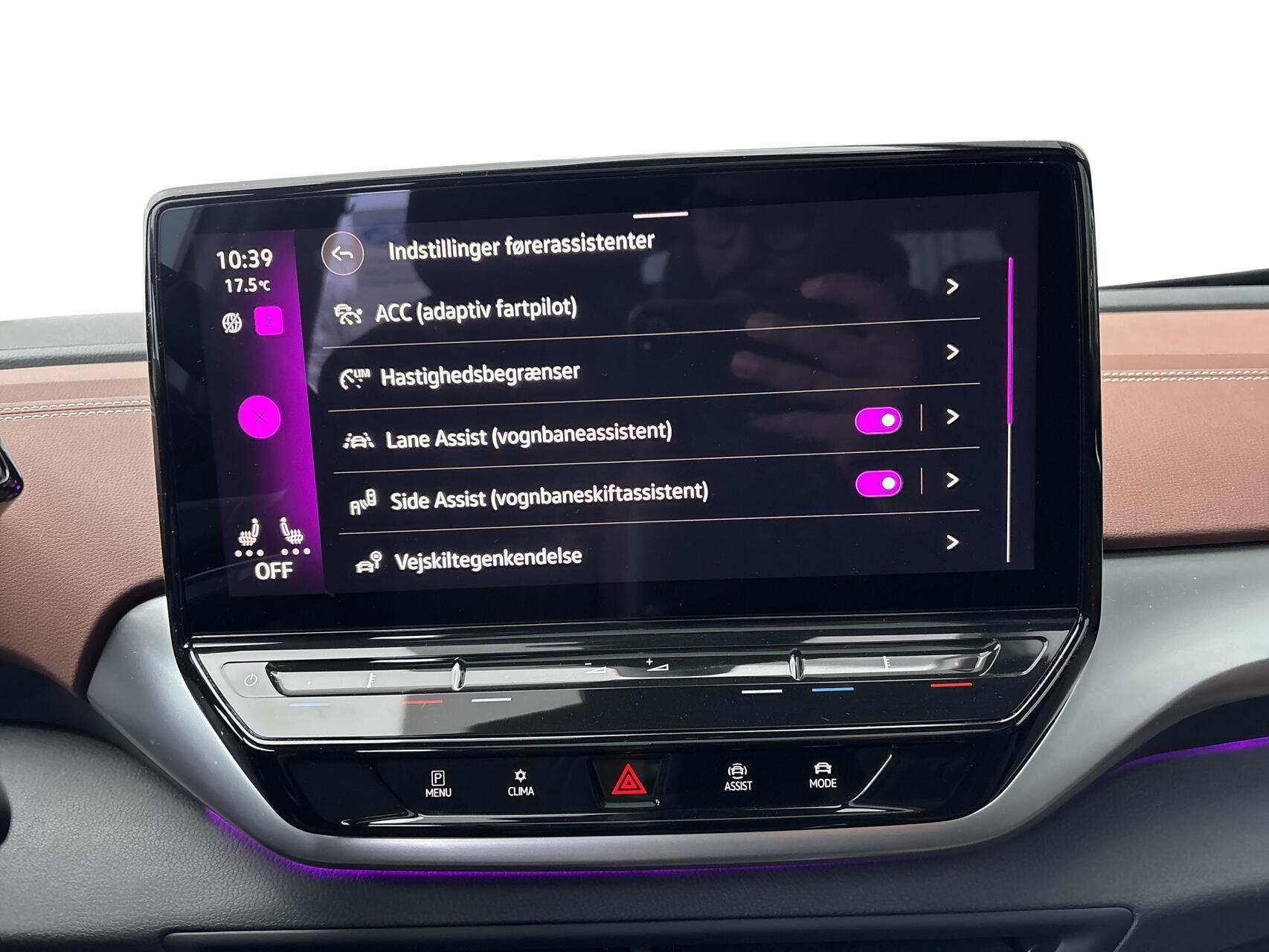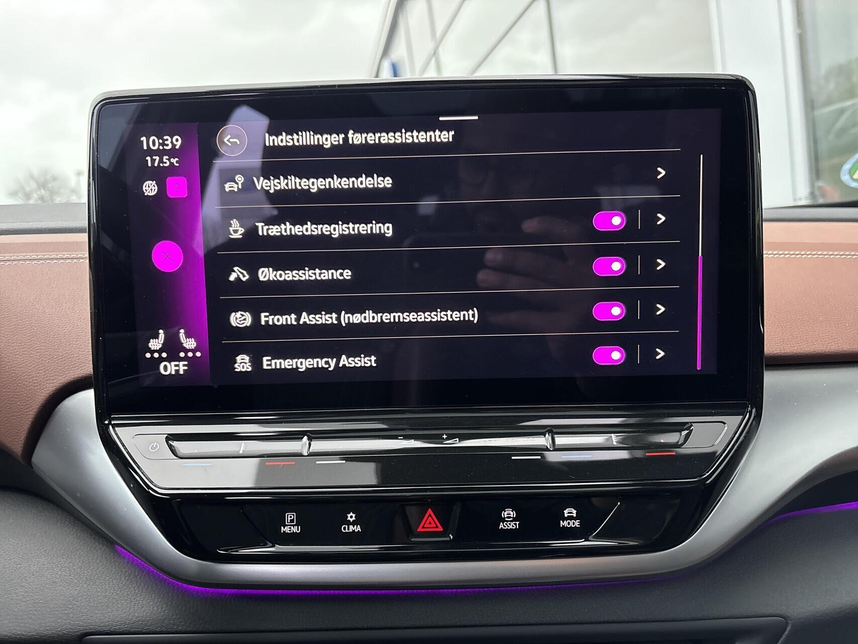 | Android Auto Wireless, Apple CarPlay Wireless, Aut. nedblændeligt bakspejl, Automatgear, Automatisk lys, Automatisk op-/nedblænding, Bakkamera, Bluetooth, Centrallås, DAB radio, Digital instrumentering, El indst. forsæder, El indst. førersæde m. memory, Elektrisk bagklap, El-foldbare spejle m. varme, El-håndbremse, Elruder for/bag, Fartbegrænser, Fartpilot adaptiv, Frontkamera, Head-up display, Håndfri telefon, Klimaanlæg 3-zoner, Kørecomputer, Massage i forsæderne , Multifunktionsrat, Musikstreaming via bluetooth, Navigation, Nøglefri døre, Nøglefri start, Panoramaglastag, Parkeringssensor for/bag, Planlagt forvarmning af kabine, Regnsensor, Sædevarme for, Touchskærm, Trådløs mobilopladning, Udvendig temperaturmåler, USB-C, Varme i rat, 19" Alufælge, Fuld LED forlygter, IQ Light, LED baglygter, LED forlygter, Matrix LED forlygter, Mørktonede ruder bag, Alcantara , Ambient belysning, Armlæn, Armlæn bag, Dellæder kabine, Glastag, Højdejusterbart førersæde, Højdejusterbart passagersæde, Læderrat, Sort himmel, Splitbagsæde, 360 graders kamera, 3-Faset, Automatisk nedblændeligt bakspejl , Automatisk nødbremsesystem, Blindvinkelassistent, BLIS, Dæktrykssensor, Isofix, Kollisionsadvarsel, Skiltegenkendelse, Træthedsregistrering, Vejbaneassistent, Lane Asisst |