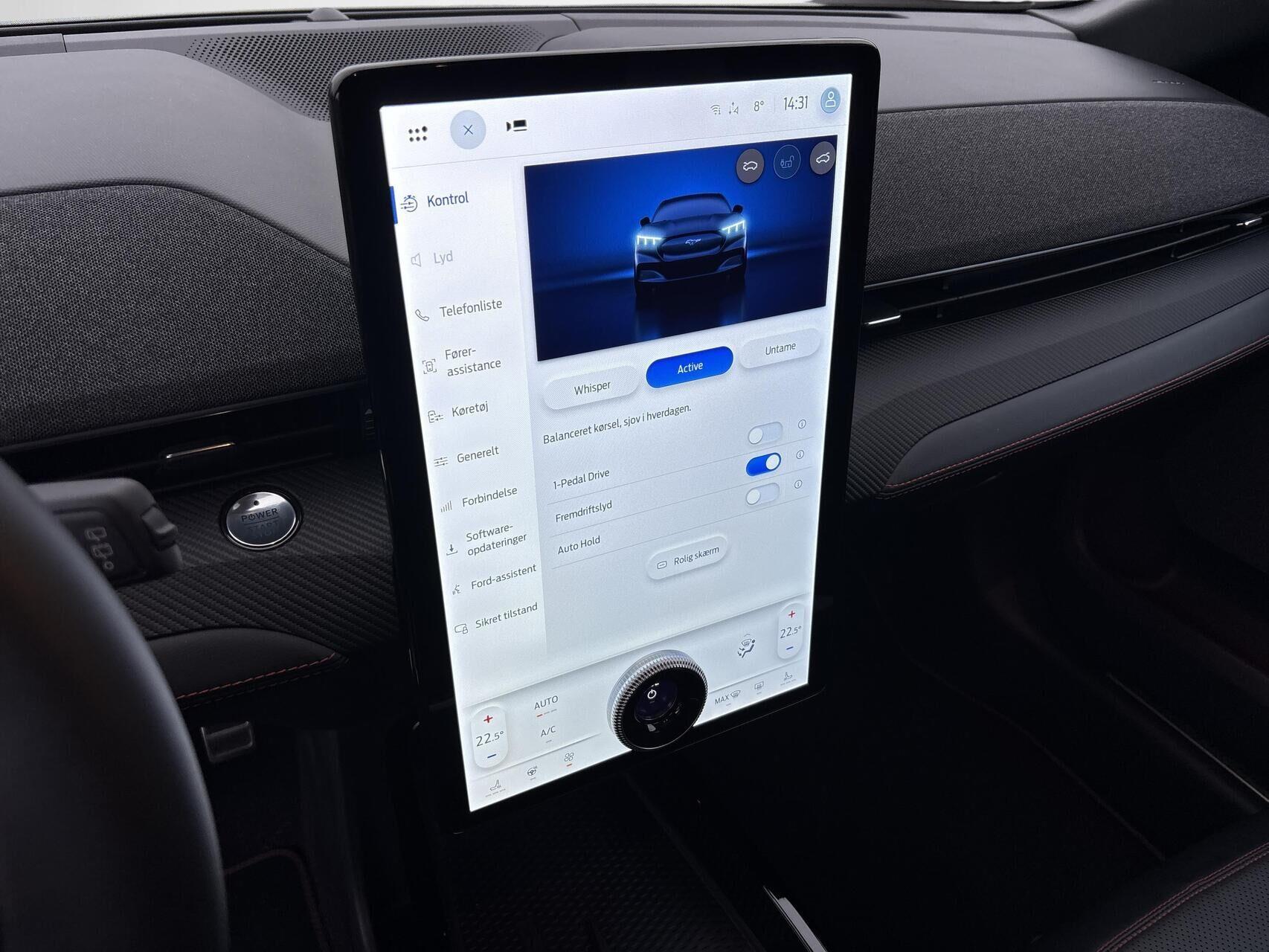 | Aircondition, Android Auto Wireless, Apple CarPlay Wireless, Aut. nedblændeligt bakspejl, Automatgear, Automatisk lys, Automatisk op-/nedblænding, B&O Sound system, Bakkamera, Bluetooth, DAB+ radio, Digital instrumentering, El indst. førersæde m. memory, El indst. forsæder, El-bagklap med fodsensor, El-foldbare spejle m. varme, El-håndbremse, Elruder for/bag, Fartbegrænser, Fartpilot, Fartpilot adaptiv, Fartpilot intelligent adaptiv, Fjernbetjent centrallås, 360° kamera, Håndfri telefon, Klimaanlæg 2-zoner, Multifunktionsrat, Musikstreaming via bluetooth, Navigation, Nøglefri adgang og håndfri åbning af bagklap, Nøglefri døre, Nøglefri start, One pedal drive, Opvarmet forrude, Panoramaglastag, Parkeringssensor for/bag, Regnsensor, Sædevarme for, Touchskærm, Udvendig temperaturmåler, Varme i bagruden, Varme i rat, 19" Alufælge, DC Hurtiglader, Frunk, Fuld LED forlygter, Hajfinneantenne, Indfarvede kofangere, LED baglygter, LED forlygter med fjernlys assistent, LED kørelys, Premium Pakke , Tågelygter, Armlæn, Armlæn m. kopholder i bag, Kopholder, Kunstlæder, Læderrat (Kunstlæder), Multijusterbart rat, Trådløs opladning af smartphone, BLIS, Isofix, Vejbaneassistent, B&O lydanlæg , Holdassist, Ikke ryger, Røde bremsekalibre , Adaptive forlygter, Anhængertræk aftageligt |