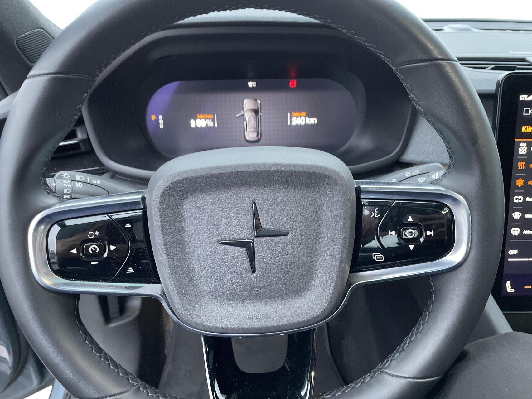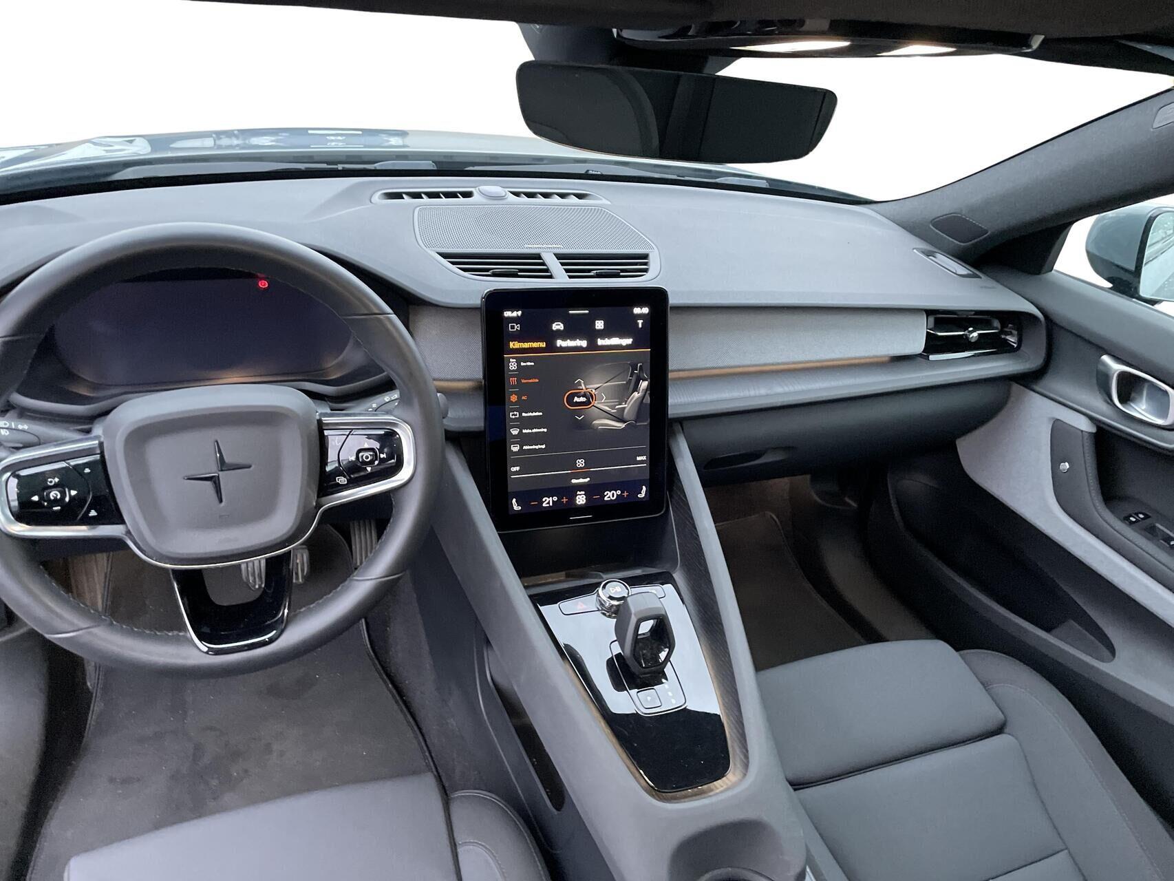 | Aircondition, Android Auto, Apple CarPlay, Aut. nedblændeligt bakspejl, Automatgear, Automatisk lys, Automatisk op-/nedblænding, Bakkamera, Bluetooth, Centrallås, Digital instrumentering, El indst. førersæde, El indst. førersæde m. memory, Elektrisk bagklap, El-foldbare spejle, El-foldbare spejle m. memory og varme, El-foldbare spejle m. varme, El-justerbart passagersæde, Elruder for, Elruder for/bag, El-spejle, El-spejle med varme, Fartpilot, Fartpilot adaptiv, Frontkamera, Håndfri telefon, Klimaanlæg, Multifunktionsrat, Musikstreaming via bluetooth, Navigation, Nøglefri døre, Nøglefri start, Parkeringssensor bag, Parkeringssensor for, Parkeringssensor for/bag, Polestar connect, Radio, Regnsensor, Stemmebetjening, Sædevarme for, Touchskærm, Trådløs mobilopladning, USB-C, USB-C tilslutning, Varme i bagruden, Armlæn, Armlæn bag, Armlæn m. kopholder i bag, El-føresæde , El-justerbart førersæde, El-justerbart førersæde med memory, Læderrat (Kunstlæder), Multijusterbart rat, Mørk loftbeklædning, Sort himmel, Stofindtræk, Trådløs opladning af smartphone, 19" Alufælge, Alufælge, Frunk, Fuld LED forlygter, LED baglygter, LED forlygter, LED forlygter med fjernlys assistent, LED Kørelys, Metallak, ABS, Adaptiv Fartpilot, Airbag, Blindvinkelassistent, BLIS, Isofix, Skiltegenkendelse, Vejbaneassistent |