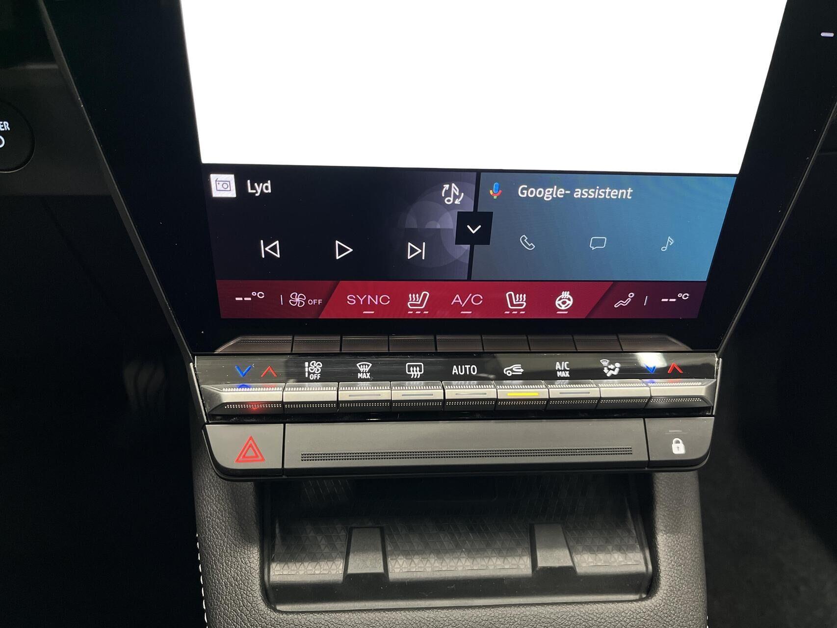 | 12''Multimedie skærm med indbygget Google Maps, Google Assistent & Google Play, 12,3'' Førerdisplay, Android Auto, Apple CarPlay, Automatgear, Automatisk op-/nedblænding, Bakkamera, Bluetooth, Centrallås, DAB+ radio, Elektrisk bagklap, El-håndbremse, Elruder for/bag, El-spejle med varme, Fartbegrænser, Fartpilot adaptiv, Håndfri telefon, Klimaanlæg, Klimaanlæg 2-zoner, Musikstreaming via bluetooth, Navigation, Nøglefri start, Nøglefri døre, Parkeringssensor bag, Parkeringssensor for, Parkeringssensor for/bag, Regnsensor, Stemmestyring, Sædevarme for, Trådløs mobilopladning, USB-C, Varme i rat, Varmepumpe, Varme i bagruden, 19" Alufælge, Hajfinneantenne, LED baglygter, LED forlygter, LED kørelys, LED Kørelys, Metallak, Mørktonede ruder bag, Tågelygter for, Armlæn, Armlæn m. kopholder i bag, Rat m. varme, Trådløs opladning af smartphone, Justerbart rat, Kopholder, Højdejusterbart førersæde, 7 Airbags, 3-Faset, Airbag, Auto hold, Blindvinkelassistent, Isofix, Selealarm |