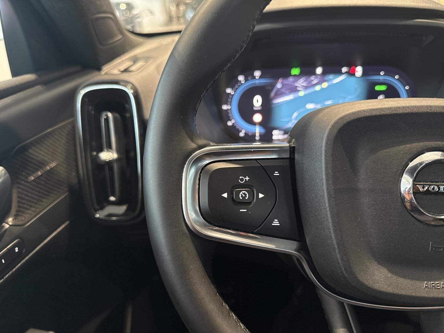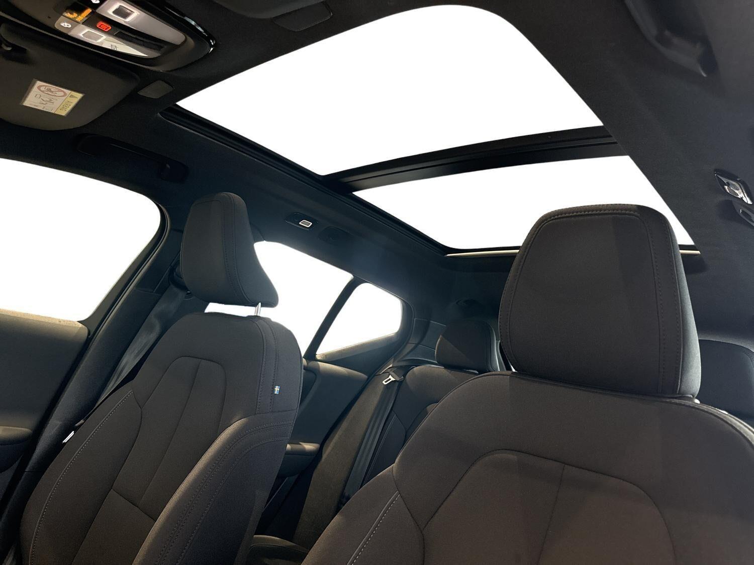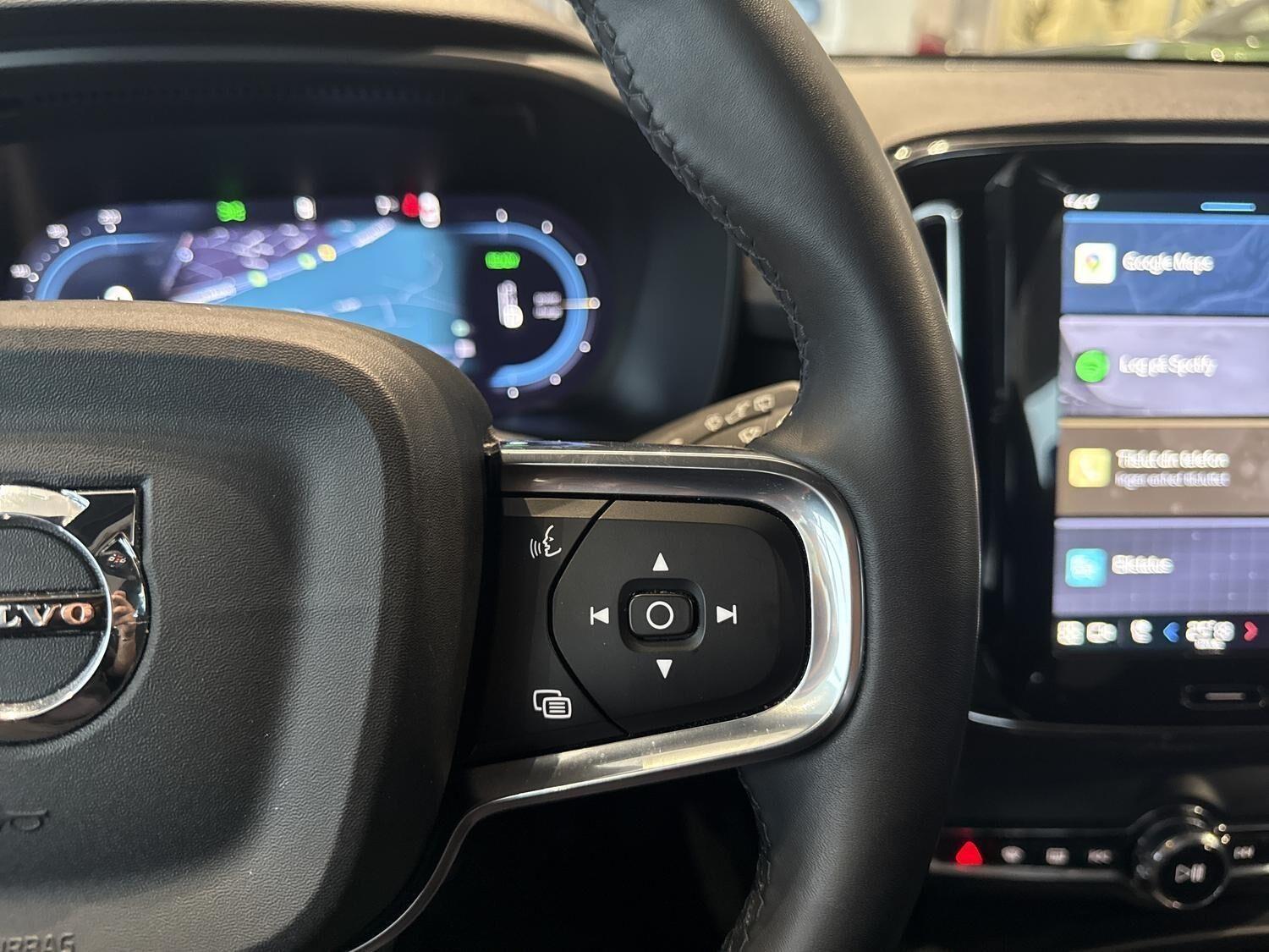 | Apple CarPlay, Aut. nedblændeligt bakspejl, Automatisk lys, Automatisk op-/nedblænding, Bakkamera, Bluetooth, Centrallås, DAB radio, Digital instrumentering, El indst. forsæder, El indst. førersæde m. memory, El-bagklap med fodsensor, El-forbold spejle m. memory, aut. nedblædning og varme, El-håndbremse, El-justerbar lændestøtte i forsæder, Elruder for/bag, El-spejle, Fartbegrænser, Fartpilot adaptiv, Fjernbetjent centrallås, Frontkamera, Harman Kardon anlæg, Hastighedsbegrænser, Håndfri telefon, Infocenter, Internet, Klimapakke, Klimaanlæg 2-zoner, Kørecomputer, Multifunktionsrat, Musikstreaming via bluetooth, Navigation, Nøglefri døre, Nøglefri start, One pedal drive, Panoramasoltag, Parkeringssensor for/bag, Planlagt forvarmning af kabine, Regnsensor, Servo, Stemmestyring, Sædevarme for/bag, Touchskærm, Trådløs mobilopladning, Udvendig temperaturmåler, USB-C, Varme i bagruden, Varme i bagsæde, Varme i rat, Varmepumpe, Varmepumpe , 19" Alufælge, DC Hurtiglader, Frunk, Fuld LED forlygter, LED forlygter, LED kørelys, Metallak, Armlæn, Armlæn bag, Bagagerumsdækken, LED interiørbelysning, Læderrat (Kunstlæder), Multijusterbart rat, Mørk loftbeklædning, Rat m. varme, Sort himmel, Splitbagsæde, Stofindtræk, Trådløs opladning af smartphone, 360 gr. View kamera, 360 graders kamera, 3-Faset, ABS, Adaptiv Fartpilot, Afstandsradar, Airbag, Alarm, Antispin, Blindvinkelassistent, BLIS, Fører-airbag, Isofix, Lyssensor, Pilot Assist, Selealarm, Skiltegenkendelse, Træthedsregistrering, Vejbaneassistent, Volvo On Call |