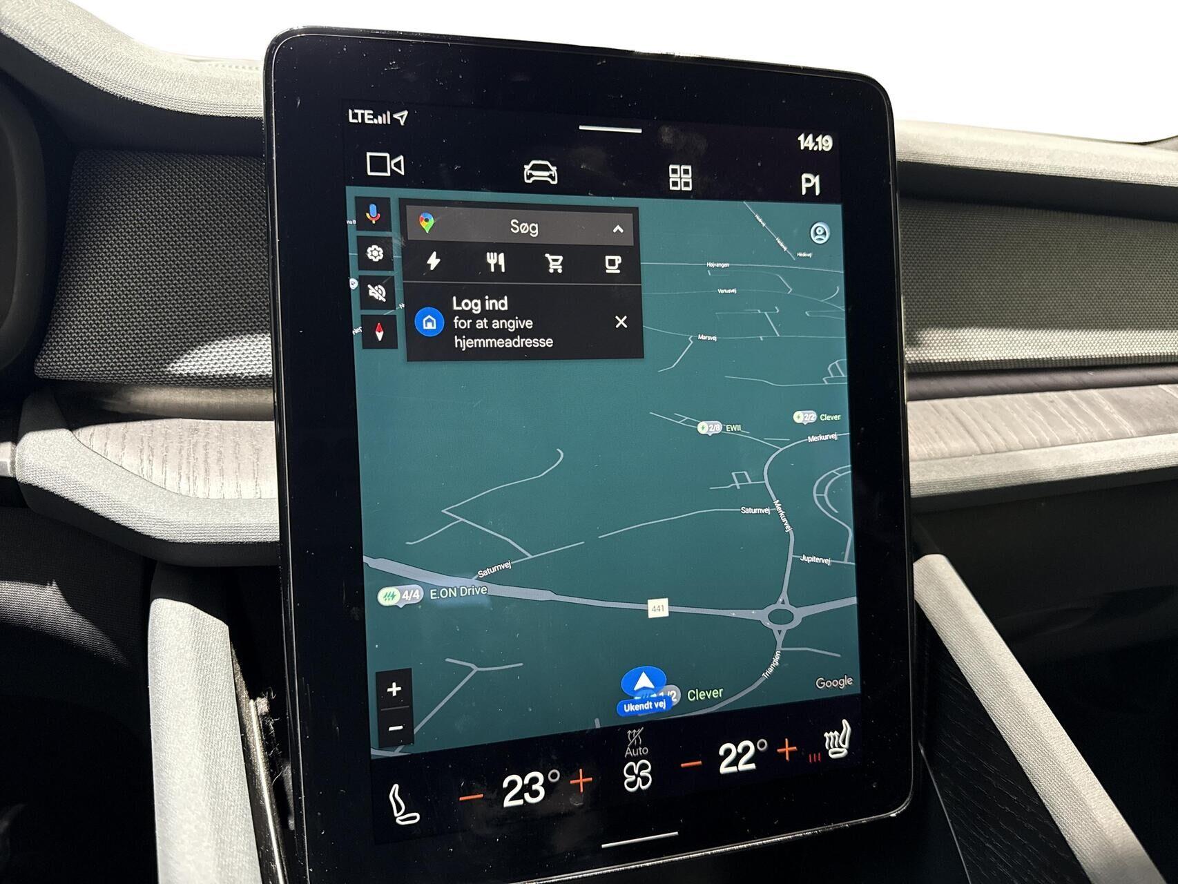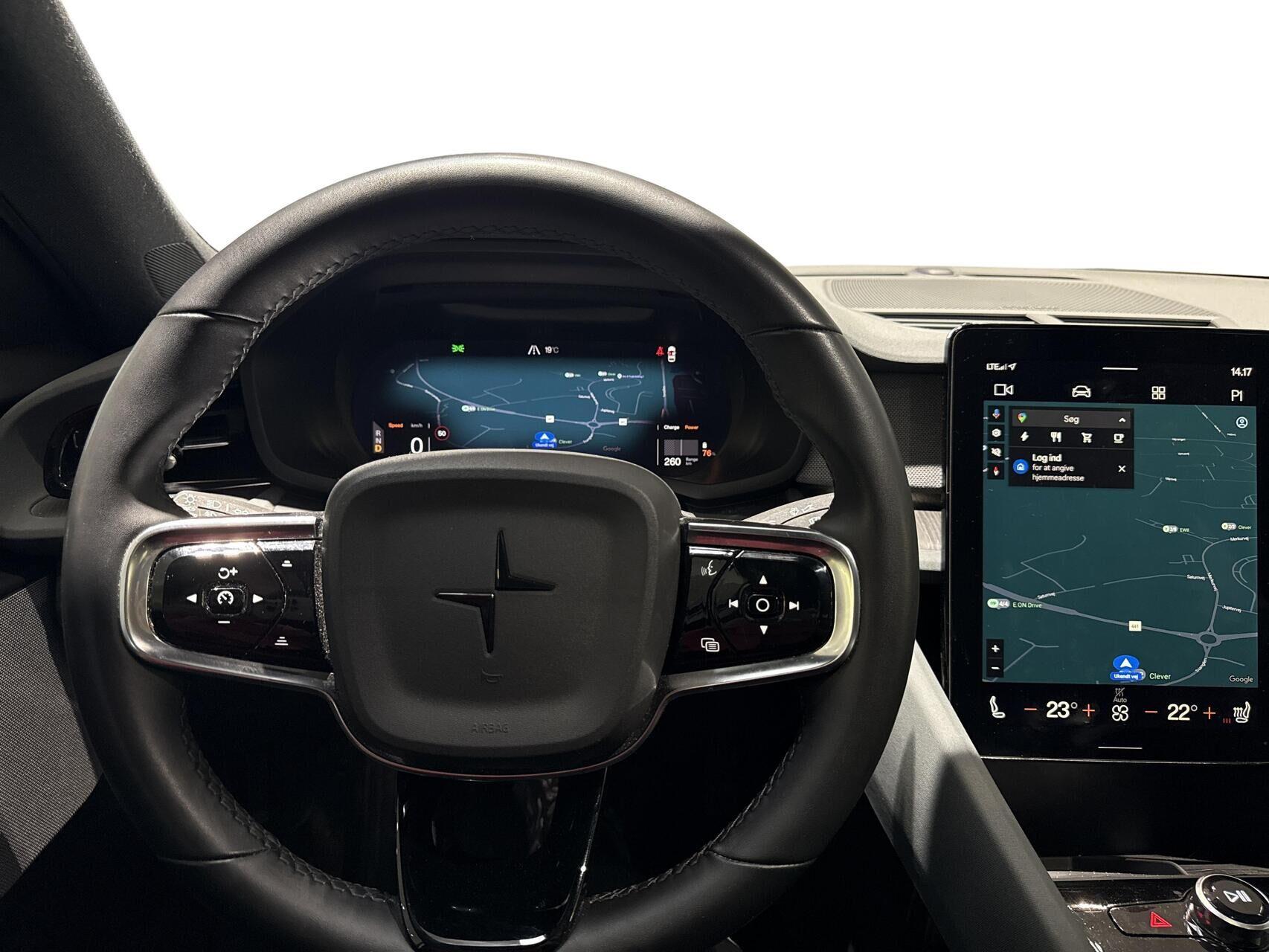 | Aircondition, Android Auto, Apple CarPlay, Aut. forvarmning af batteri, Automatgear, Automatisk lys, Automatisk op-/nedblænding, AUX stik, Bakkamera, Bluetooth, Centrallås, Digital instrumentering, El indst. forsæder, El indst. førersæde m. memory, Elektrisk bagklap, El-foldbare spejle, El-håndbremse, El-justerbar lændestøtte, Elruder for, Elruder for/bag, El-spejle, Fartpilot, Fartpilot adaptiv, Fjernbetjent parkeringsassistent, Harman Kardon anlæg, Klimaanlæg, Kørecomputer, Multifunktionsrat, Navigation, Musikstreaming via bluetooth, Nøglefri adgang og håndfri åbning af bagklap, Nøglefri døre, Nøglefri start, One pedal drive, panoramaglastag, Panoramaglastag, Parkeringssensor bag, Parkeringssensor for, Parkeringssensor for/bag, Planlagt forvarmning af kabine, Radio, Polestar connect, Regnsensor, Servo, Sædevarme for, Sædevarme for/bag, Touchskærm, Trådløs mobilopladning, Udvendig temperaturmåler, Varme i rat, Varmepumpe, Varmepumpe , Alufælge, DC Hurtiglader, LED baglygter, LED forlygter, LED kørelys, LED Kørelys, LED forlygter med fjernlys assistent, Armlæn, Armlæn bag, Justerbart rat, Glastag, Multijusterbart rat, Rat m. varme, Splitbagsæde, Adaptiv Fartpilot, Afstandsradar, Airbag, Alarm, Antispin, Auto hold, Blindvinkelassistent, BLIS, ESP, Isofix, Pilot Assist, Skiltegenkendelse, Træthedsregistrering, Vejbaneassistent |