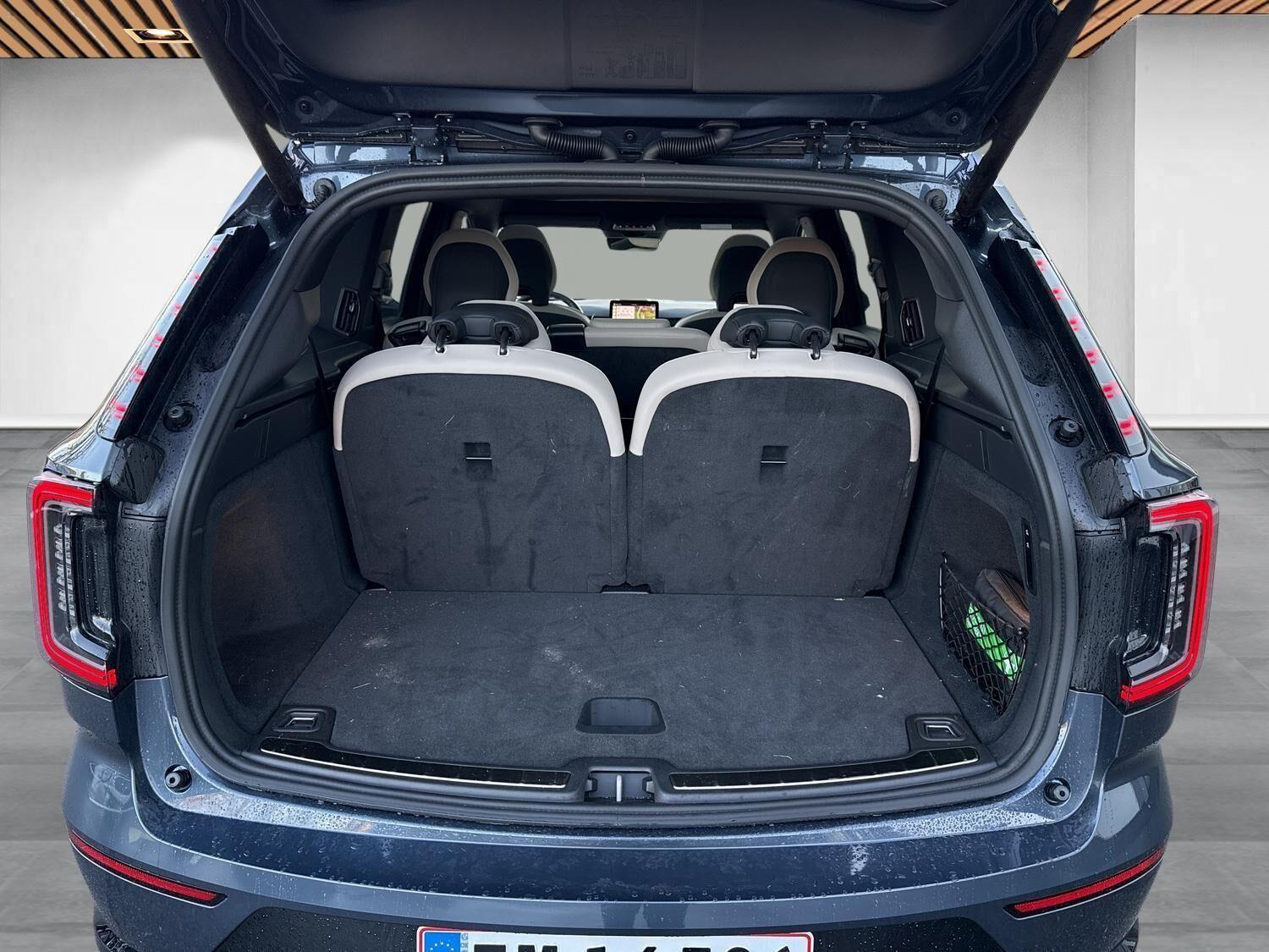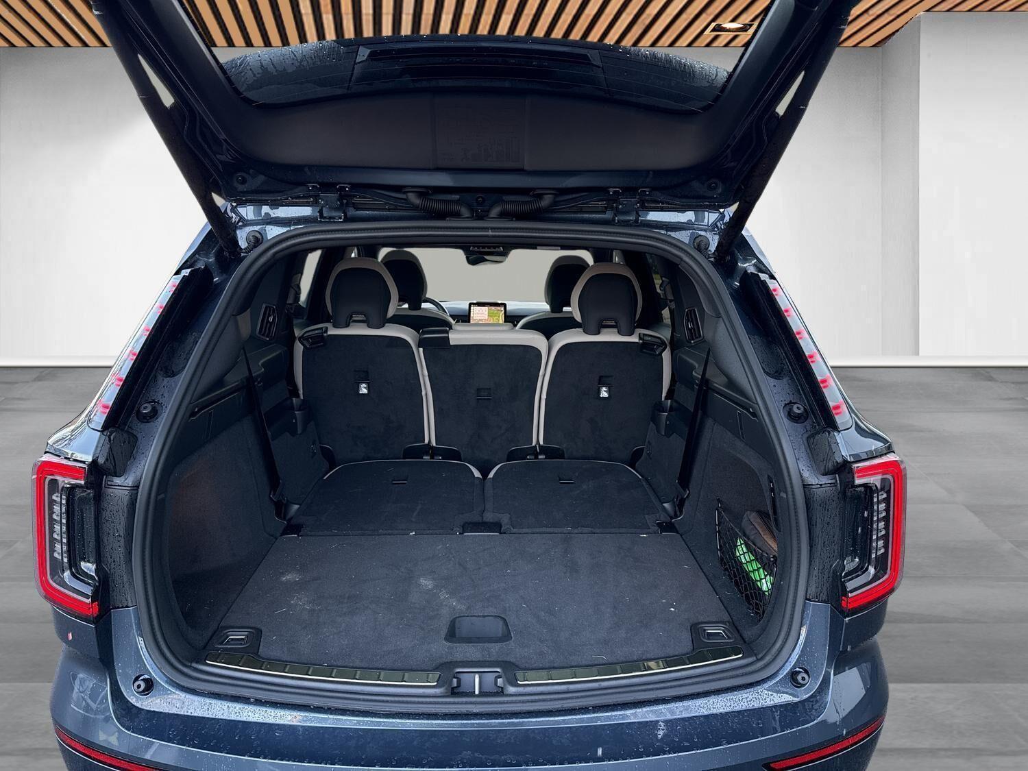 Android Auto, Apple CarPlay, Aut. forvarmning af batteri, Aut. nedblændeligt bakspejl, Automatgear, Automatisk op-/nedblænding, Bakkamera, Bluetooth, BOSE lydsystem, DAB+ radio, Digital instrumentering, El indst. førersæde m. memory, Fartpilot, Fartpilot adaptiv, Fod betjent bagklap, Frontkamera, Håndfri telefon, Klimaanlæg 4-zoner, Multifunktionsrat, Musikstreaming via bluetooth, Nøglefri døre, Nøglefri start, Parkeringssensor bag, Parkeringssensor for, Radio, Ratvarme, Regnsensor, Servo, Stemmebetjening, Sædevarme for, Sædevarme for/bag, Trådløs mobilopladning, Udvendig temperaturmåler, USB-C tilslutning, Varmepumpe, 20" Alufælge, Frunk, Indfarvede kofangere, Kurvelys aktivt, LED baglygter, LED forlygter, LED kørelys, Matrix LED forlygter, Metallak, Mørktonede ruder bag, 7 sæder, Armlæn, El-justerbart rat, Højdejusterbart førersæde, Højdejusterbart passagersæde, Kopholder, Kunstlæder, Læderrat, Multijusterbart rat, Panorama glastag, Rat m. varme, ABS, Airbag, Automatisk nødbremsesystem, Automatisk nødopkald, Blindvinkelassistent, Dæktrykssensor, ESP, Fører-airbag, Gardin-airbag, Intelli. hastighedsassistent, Isofix, Lyssensor, Selealarm, Side-airbag, Skiltegenkendelse, Træthedsregistrering, Vejbaneassistent, 3 Faset opladning, 5 års fabriksgaranti op til 200.000 km, 360° kamera