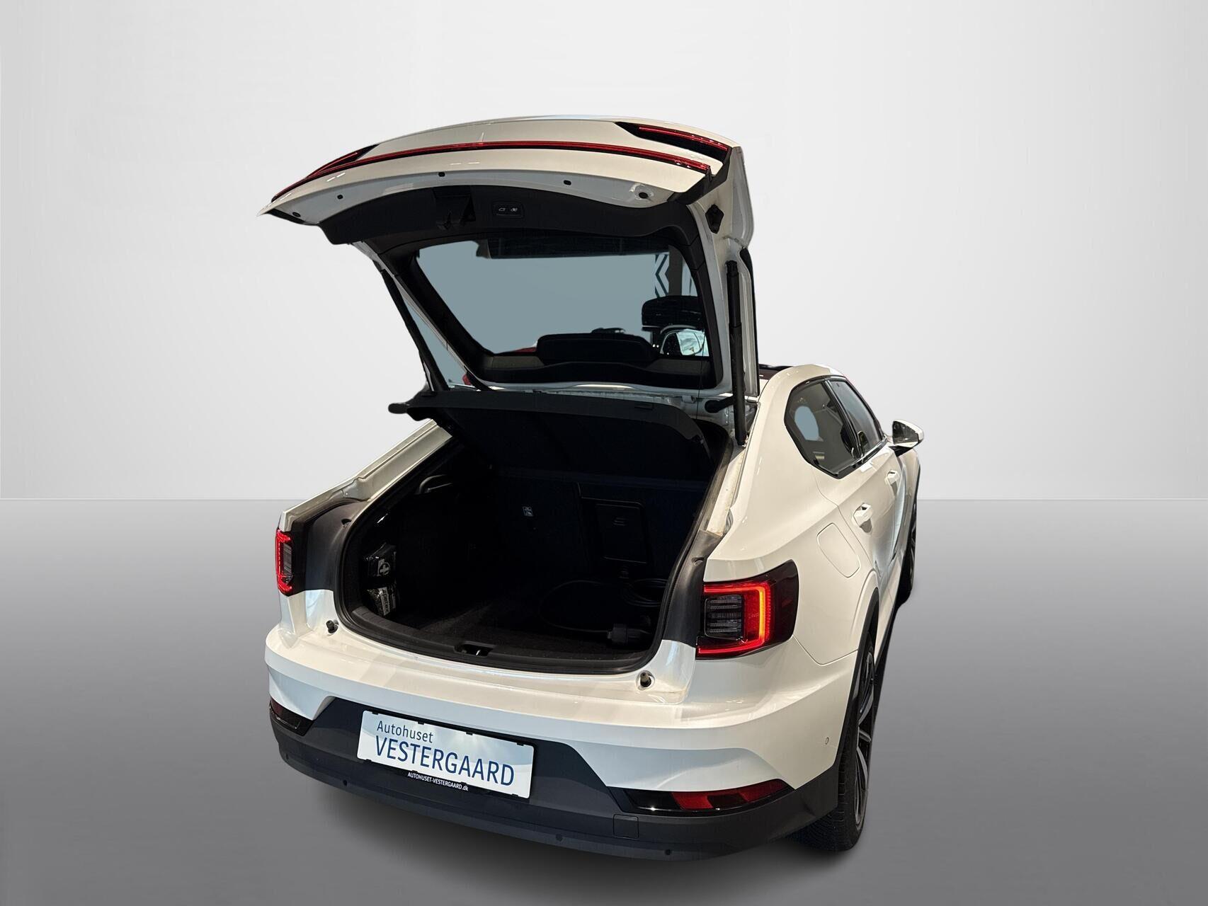 | Aircondition, Android Auto, Apple CarPlay, Aut. forvarmning af batteri, Aut. nedblændeligt bakspejl, Automatgear, Automatisk lys, Automatisk op-/nedblænding, Bakkamera, Bluetooth, Centrallås, Digital instrumentering, El indst. forsæder, El indst. førersæde, El indst. førersæde m. memory, Elektrisk bagklap, El-foldbare spejle, El-håndbremse, Elruder for, Elruder for/bag, El-spejle, Fartbegrænser, Fartpilot, Fartpilot adaptiv, Fjernbetjent centrallås, Frontkamera, Harman Kardon lydanlæg, Håndfri telefon, Infocenter, Klimaanlæg, Klimaanlæg 2-zoner, Multifunktionsrat, Musikstreaming via bluetooth, Navigation, Nøglefri adgang og håndfri åbning af bagklap, Nøglefri døre, Nøglefri start, One pedal drive, Panoramaglastag, Parkeringssensor bag, Parkeringssensor for, Parkeringssensor for/bag, Planlagt forvarmning af kabine, Polestar connect, Radio, Regnsensor, Servo, Sædevarme for, Sædevarme for/bag, Sædeventilation, Touchskærm, Trådløs mobilopladning, Udvendig temperaturmåler, Varme i bagsæde, Varme i rat, Varmepumpe, Varmepumpe , Alufælge, Fuld LED forlygter, LED baglygter, LED forlygter, LED kørelys, LED Kørelys, Armlæn, El-justerbart førersæde med memory, El-føresæde , Glastag, Justerbart rat, Køl i forsæder, Læderkabine, Rat m. varme, Splitbagsæde, ABS, Adaptiv Fartpilot, Afstandsradar, Airbag, Alarm, Antispin, Auto hold, Blindvinkelassistent, Lyssensor, Pilot Assist, Selealarm, Skiltegenkendelse, Træthedsregistrering, Vejbaneassistent |