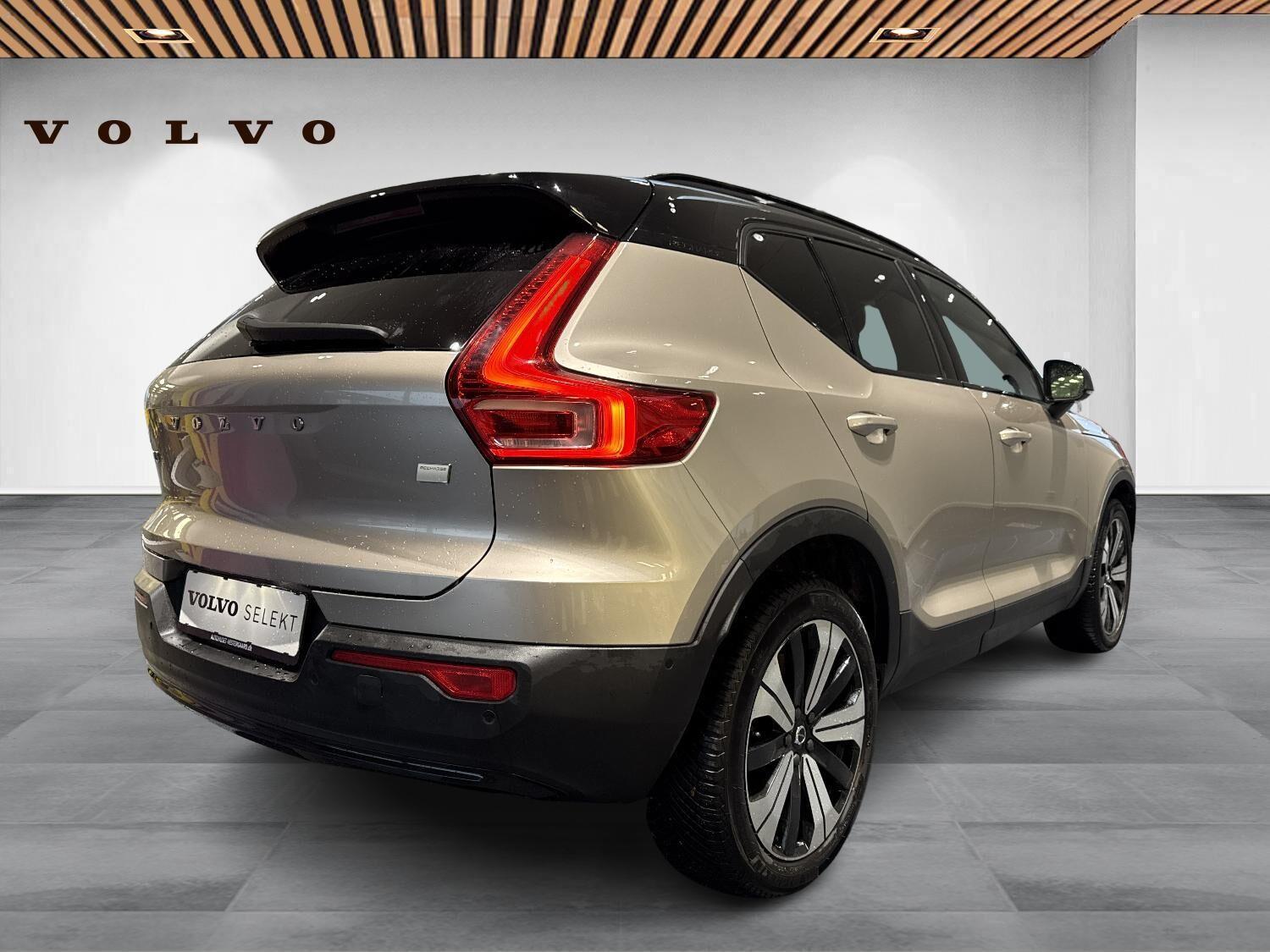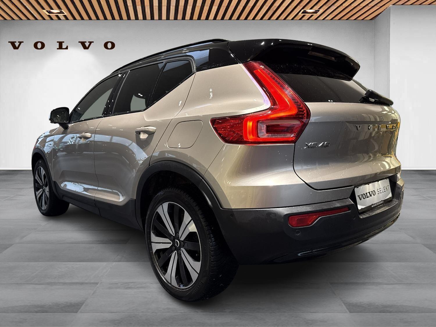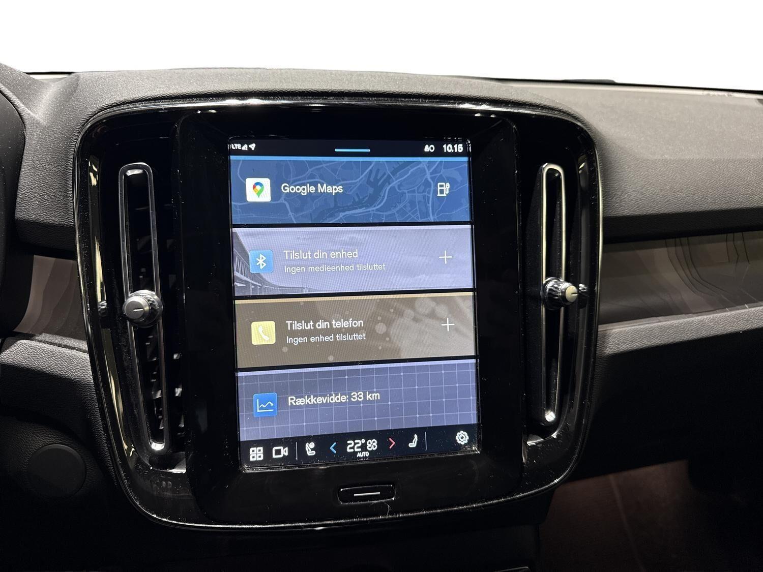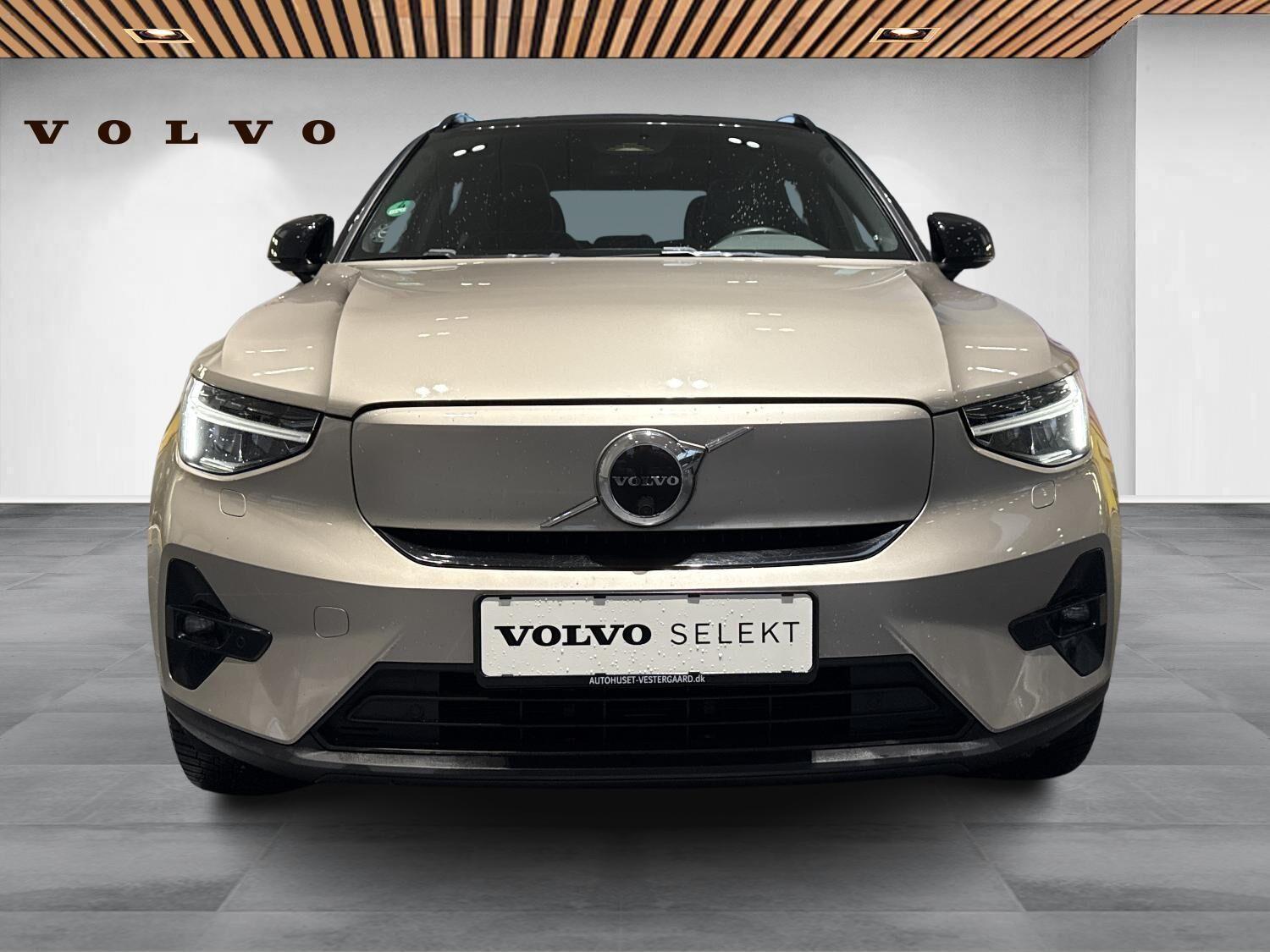 | Android Auto, Apple CarPlay, Aut. nedblændeligt bakspejl, Automatgear, Automatisk lys, Automatisk op-/nedblænding, Bakkamera, Bluetooth, Digital instrumentering, El indst. førersæde m. memory, El-bagklap med fodsensor, Elektrisk bagklap, El-foldbare spejle m. memory og varme, El-håndbremse, El-justerbar lændestøtte i forsæder, El-justerbart passagersæde, Elruder for/bag, El-spejle med varme, El-spejle, Fartpilot adaptiv, Fjernbetjent centrallås, Frontkamera, Fugtighedssensor, Harman Kardon anlæg, Håndfri telefon, Klimapakke, Internet, Klimaanlæg 2-zoner, Nøglefri adgang og håndfri åbning af bagklap, Nøglefri døre, Nøglefri start, One pedal drive, Opvarmede viskerblade, Panoramasoltag, Parkeringssensor for/bag, Regnsensor, Stemmebetjening, Sædevarme for, Travel Assist , Trådløs mobilopladning, Udvendig temperaturmåler, USB-C, Varmepumpe, Varme i rat, 19" Alufælge, Alufælge, Frunk, Fuld LED forlygter, LED baglygter, LED forlygter, LED forlygter med fjernlys assistent, Lygtevasker, LED Tågelygter foran, Sort tag , Tonede ruder, Tågelygter for/bag, Justerbart rat, Kopholder, Kunstlæder, Rat m. varme, Soltag, 360 graders kamera, Afstandsradar, AFU (Nødbremseassistance), Airbag, Alarm, Antispin, Aut.nedblændende bak- og sidespejle, Auto hold, Blindvinkelassistent, BLIS, Dæktrykssensor, ESP, Isofix, Kollisionsadvarsel, Lyssensor, Pilot Assist, Selealarm, Selestrammer, Real time traffic, Side-airbag, Sidekollisionsbeskyttelse, Skiltegenkendelse, Slippery Road Alert, Tyverialarm, Vejbaneassistent, Volvo On Cal |