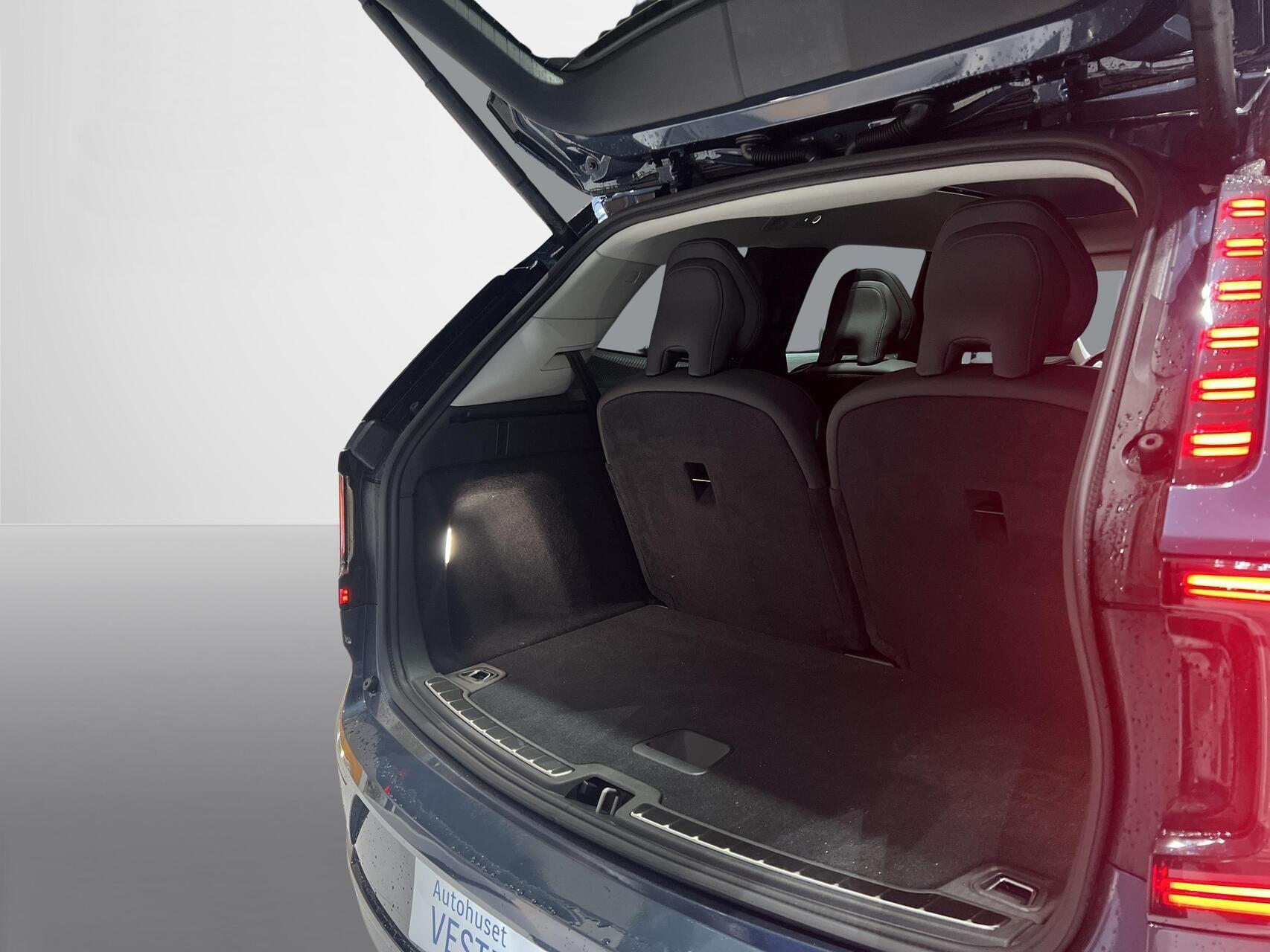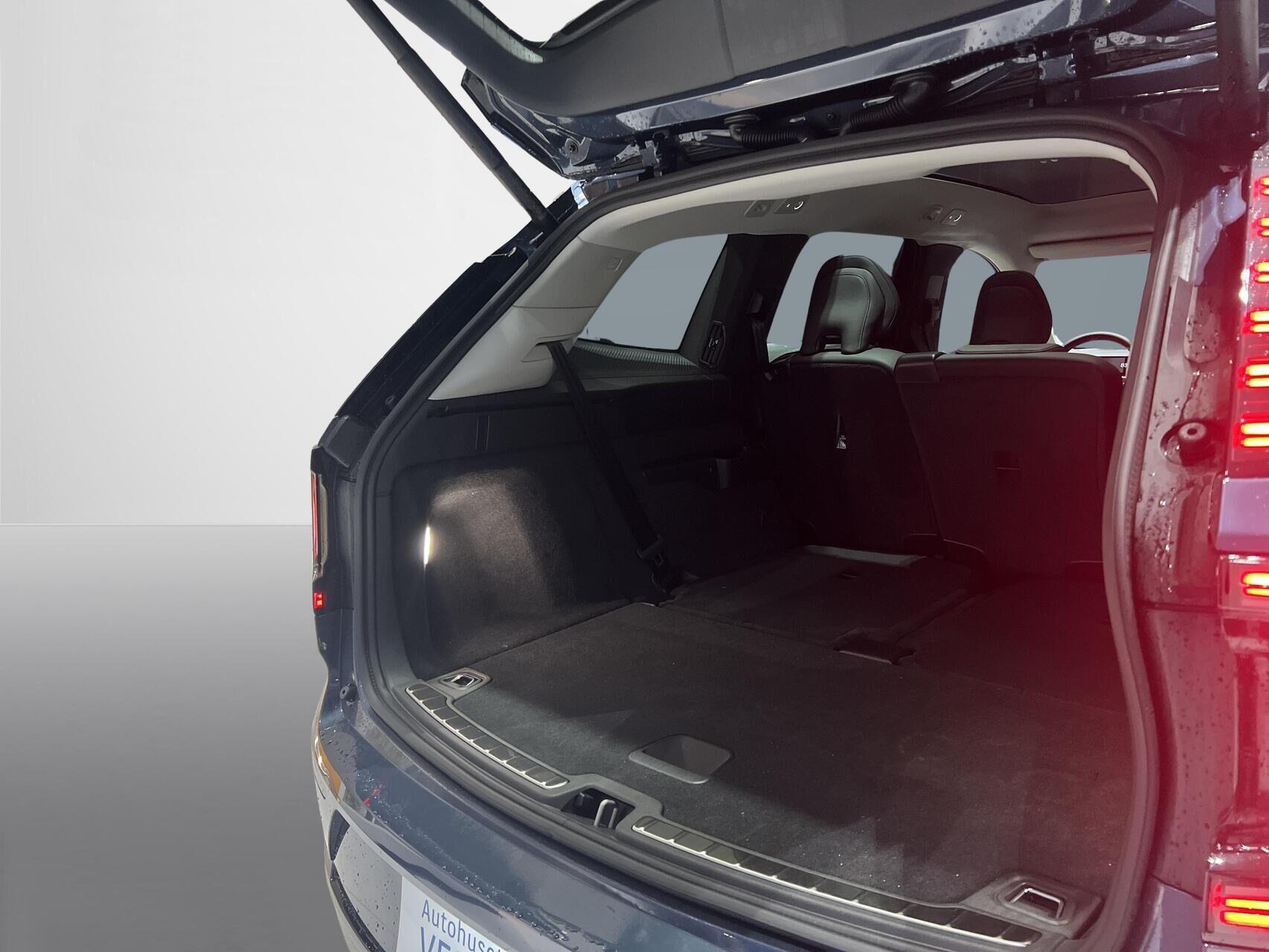 | Apple CarPlay Wireless, Android Auto Wireless, Aut. nedblændeligt bakspejl, Automatisk lys, Automatisk op-/nedblænding, Bakkamera, Bluetooth, Bose Sound system, Centrallås, DAB radio, Digital instrumentering, El indst. forsæder, El-bagklap med fodsensor, El-forbold spejle m. memory, aut. nedblædning og varme, El-håndbremse, Elruder for/bag, El-spejle, Fartbegrænser, Fartpilot adaptiv, Fjernbetjent centrallås, Frontkamera, Hastighedsbegrænser, Head-up display, Håndfri telefon, Infocenter, Internet, Klimaanlæg, Kørecomputer, Multifunktionsrat, Musikstreaming via bluetooth, Navigation, Nøglefri adgang og håndfri åbning af bagklap, Panoramaglastag, Parkeringssensor for/bag, Planlagt forvarmning af kabine, Regnsensor, Servo, Stemmestyring, Sædevarme for/bag, Touchskærm, Trådløs mobilopladning, Udvendig temperaturmåler, USB-C, Varme i bagruden, Varme i bagsæde, Varme i rat, Varmepumpe, Varmepumpe , 20" Alufælge, DC Hurtiglader, Frunk, Fuld LED forlygter, LED baglygter, LED kørelys, LED Kørelys, Metallak, Armlæn, Armlæn bag, 7 sæder, Glastag, Læderkabine (Kunstlæder), Læderrat (Kunstlæder), Rat m. varme, Sort himmel, Splitbagsæde, 360 gr. View kamera, 360 graders kamera, 3-Faset, ABS, Adaptiv Fartpilot, Afstandsradar, Blindvinkelassistent, BLIS |