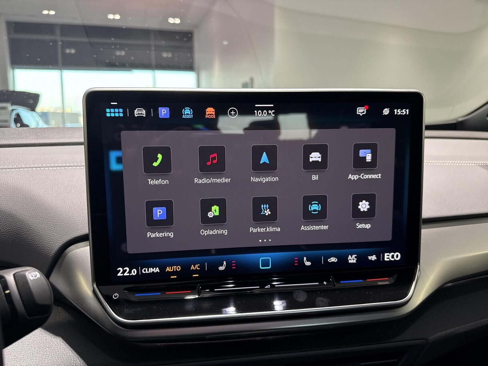 | Aircondition, Android Auto, Android Auto Wireless, App integration, Apple CarPlay, Apple CarPlay Wireless, Aut. forvarmning af batteri, Automatgear, Automatisk lys, Automatisk op-/nedblænding, Bakkamera, Bluetooth, Centrallås, Digital instrumentering, El-håndbremse, Elruder for, Elruder for/bag, El-spejle, Fartpilot, Fartpilot adaptiv, Fartbegrænser, Fjernbetjent centrallås, Håndfri telefon, Infocenter, Klimaanlæg, Klimaanlæg 2-zoner, Multifunktionsrat, Musikstreaming via bluetooth, Navigation, Nøglefri døre, Nøglefri start, One pedal drive, Parkeringssensor bag, Parkeringssensor for, Parkeringssensor for/bag, Planlagt forvarmning af kabine, Radio, Regnsensor, Servo, Sædevarme for, Touchskærm, Trådløs mobilopladning, Udvendig temperaturmåler, Varme i rat, Alufælge, DC Hurtiglader, LED baglygter, LED forlygter, LED kørelys, LED Kørelys, Alcantara , Alcantara-kabine, Ambient belysning, Ambiente belysning, Armlæn, Armlæn bag, Justerbart rat, Kopholder, Multijusterbart rat, Rat m. varme, Splitbagsæde, ABS, Adaptiv Fartpilot, Afstandsradar, Airbag, Alarm, Antispin, Auto hold, Blindvinkelassistent, BLIS, Dæktrykssensor, Isofix, Skiltegenkendelse, Træthedsregistrering, Vejbaneassistent |
