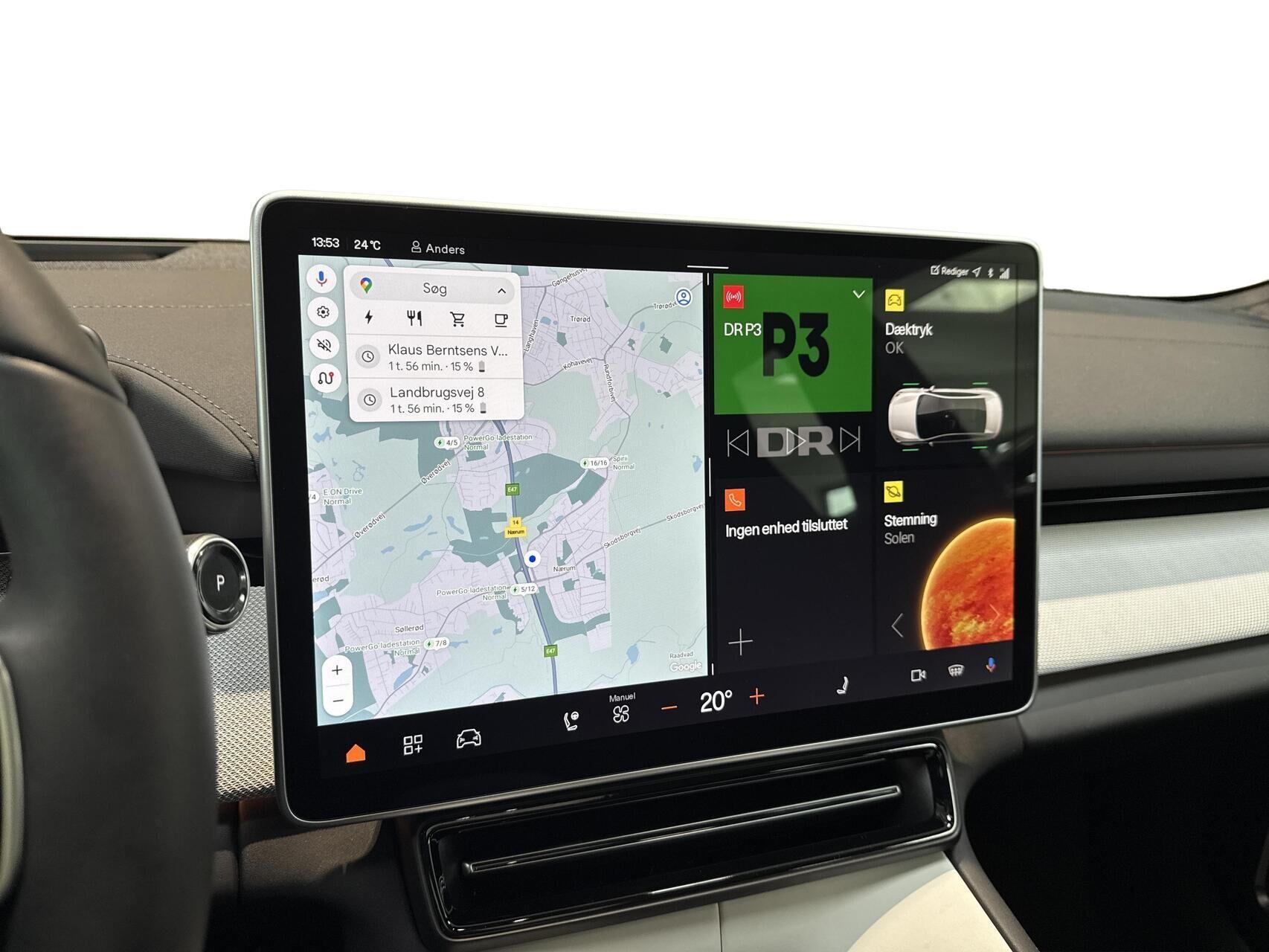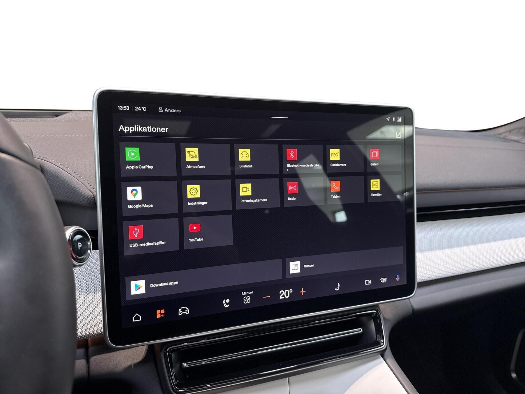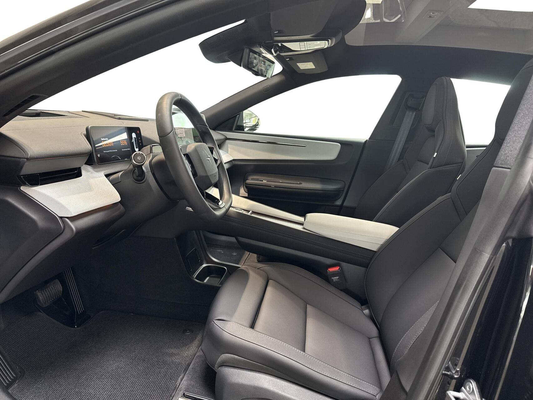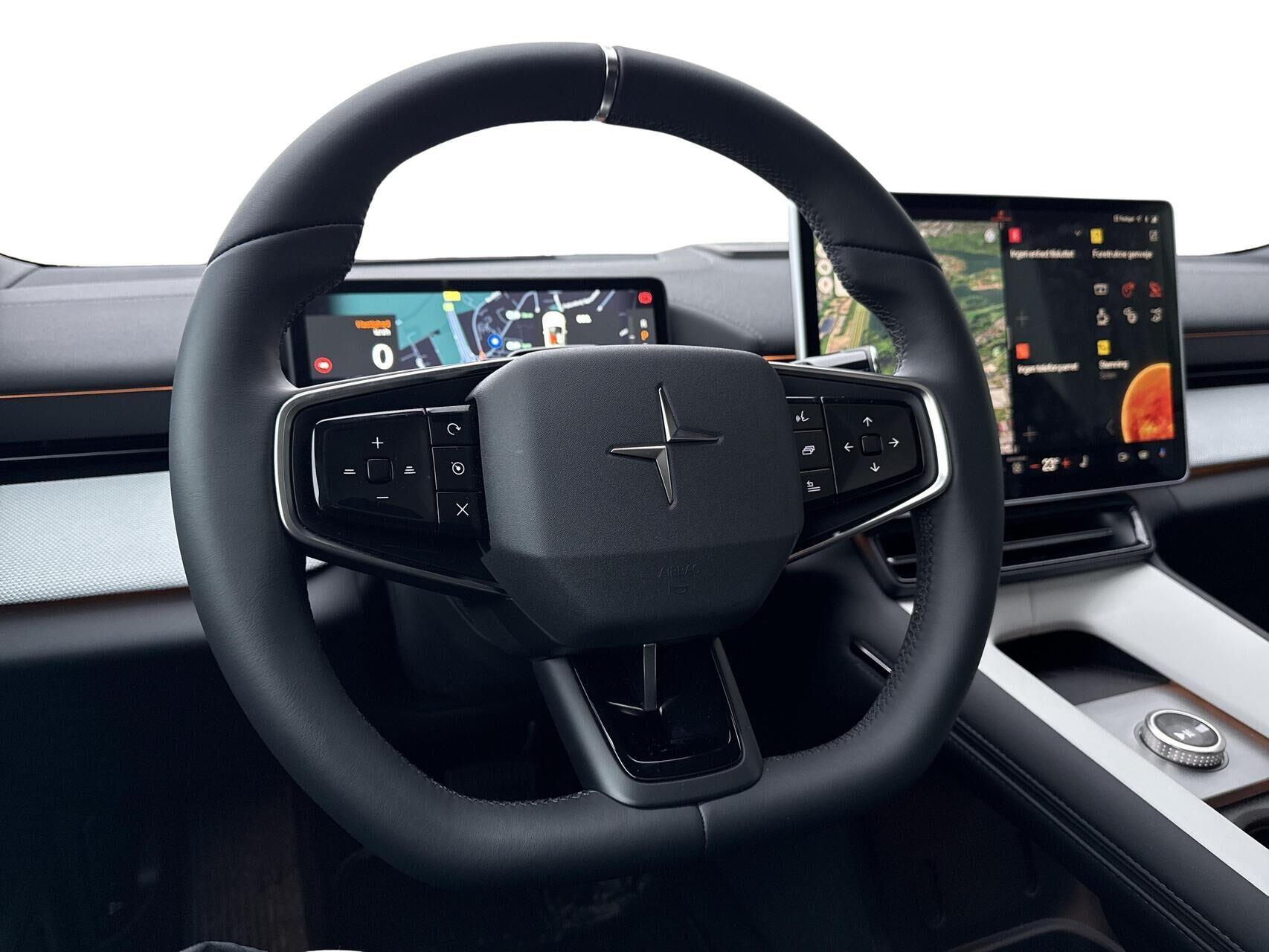 | 15,4" touchscreen, 22 KWh lader, Active Steering Assist , Aircondition, App integration, Apple CarPlay Wireless, Aut. forvarmning af batteri, Aut. nedblændeligt bakspejl, Automatisk lys, Automatisk op-/nedblænding, Bakkamera, Bluetooth, City steering, DAB radio, Digital instrumentering, Driving assistant, El indst. førersæde m. memory, El justerbar. Bagsæder, El indst. førersæde, El-bagklap med fodsensor, El-forbold spejle m. memory, aut. nedblædning og varme, El-håndbremse, El-justerbar lændestøtte i forsæder, Elruder for/bag, El-spejle, Fartpilot adaptiv, Fjernbetjent centrallås, Follow Me Home Lys, Fod betjent bagklap, Frontkamera, Harman Kardon lydanlæg, Head-up display, Indbygget kamera i bakspejl, Indstigningslys, Infocenter, Klimaanlæg 3-zoner, Nøglefri døre, Nøglefri start, One pedal drive, Panoramaglastag, Parkeringssensor for/bag, Planlagt forvarmning af kabine, Polestar connect, Regnsensor, Stemmebetjening, Sædevarme for/bag, Trådløs mobilopladning, Udvendig temperaturmåler, USB-C tilslutning, Varme i bagsæde, Varme i rat, Varmepumpe, 20" Alufælge, Adaptive LED Forlygter, Frunk, Indfarvede kofangere, Kurvelys, LED baglygter, LED kørelys, Metallak, Mørktonede ruder bag, Armlæn m. kopholder i bag, Splitbagsæde, 360 graders kamera, BLIS, Dæktrykssensor, Elbetjent barnelås, ESP, Fører-airbag, Gardin-airbag, IntelliSafe Assist, Isofix, Kollisionsadvarsel, Pilot Assist, Selestrammer, Sidekollisionsbeskyttelse, Startspærre, 22kW AC-ladning |