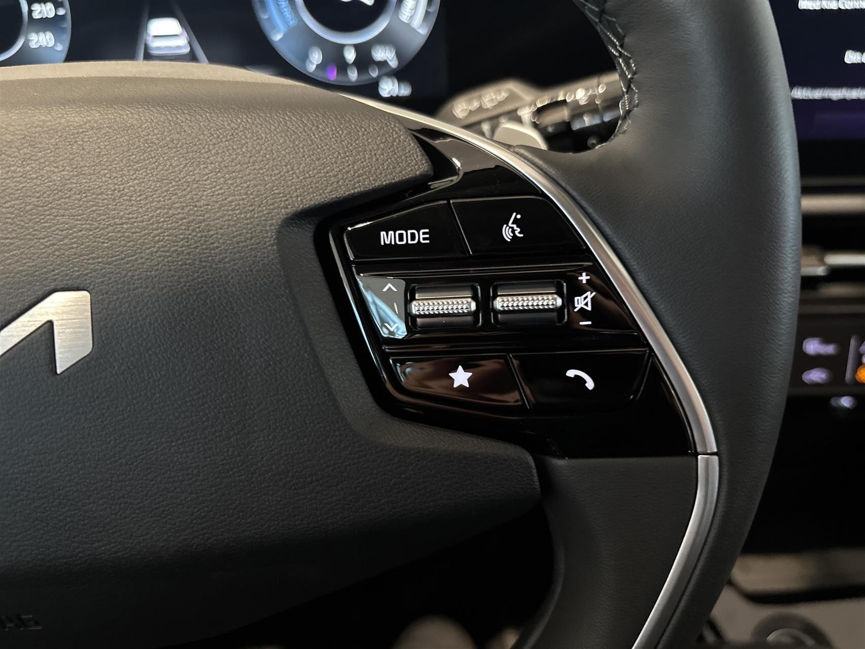 | Aircondition, Android Auto, Apple CarPlay, Aut. nedblændeligt bakspejl, Automatgear, Automatisk lys, Automatisk op-/nedblænding, Bakkamera, Bluetooth, Centrallås, Digital instrumentering, El indst. førersæde, Elektrisk bagklap, El-foldbare spejle m. varme, El-håndbremse, Elruder for, Elruder for/bag, El-spejle, El-spejle med varme, Fartbegrænser, Fartpilot, Fartpilot adaptiv, Fjernbetjent centrallås, Håndfri telefon, Infocenter, Klimaanlæg, Klimaanlæg 2-zoner, Multifunktionsrat, Musikstreaming via bluetooth, Navigation, Nøglefri døre, Nøglefri start, One pedal drive, Parkeringssensor bag, Parkeringssensor for, Parkeringssensor for/bag, Planlagt forvarmning af kabine, Radio, Regnsensor, Servo, Sædevarme for, Touchskærm, Trådløs mobilopladning, Udvendig temperaturmåler, Varme i rat, Varmepumpe, Varmepumpe , Alufælge, Frunk, LED baglygter, LED forlygter, LED kørelys, LED Kørelys, DC Hurtiglader, Armlæn, Kopholder, Ambiente belysning, Læderkabine (Kunstlæder), Rat m. varme, Læderrat, Splitbagsæde, Adaptiv Fartpilot, Afstandsradar, Airbag, Alarm, Antispin, Auto hold, Skiltegenkendelse, Vejbaneassistent, Træthedsregistrering, Isofix |