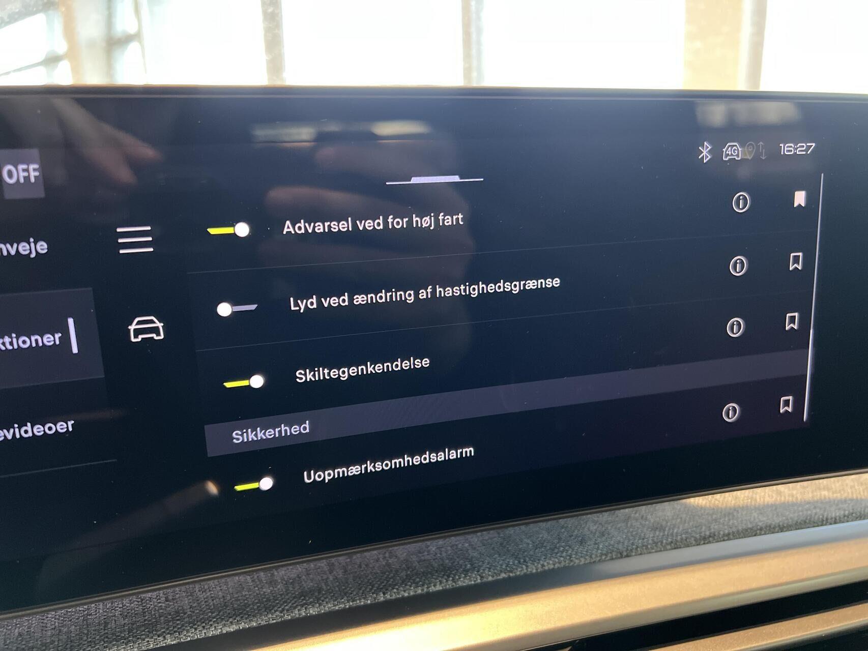 | Android Auto, Aut. nedblændeligt bakspejl, Automatgear, Apple CarPlay, Automatisk lys, Bakkamera, Bluetooth, Centrallås, DAB radio, Digital instrumentering, El-foldbare spejle m. varme, El-håndbremse, Elruder for/bag, Fartpilot, Fartbegrænser, Håndfri telefon, Klimaanlæg 3-zoner, Kørecomputer, Multifunktionsrat, Musikstreaming via bluetooth, Navigation, Nøglefri døre, Nøglefri start, Parkeringssensor for/bag, Regnsensor, Touchskærm, Trådløs mobilopladning, Udvendig temperaturmåler, USB-C, 19" Alufælge, LED baglygter, LED forlygter, Mørktonede ruder bag, 7 sæder, Armlæn, Delkunstlæderindtræk, Højdejusterbart førersæde, Højdejusterbart passagersæde, Læderrat, Sort himmel, Splitbagsæde, 3-Faset, Dæktrykssensor, Isofix, Automatisk nødbremsesystem, Vejbaneassistent |
