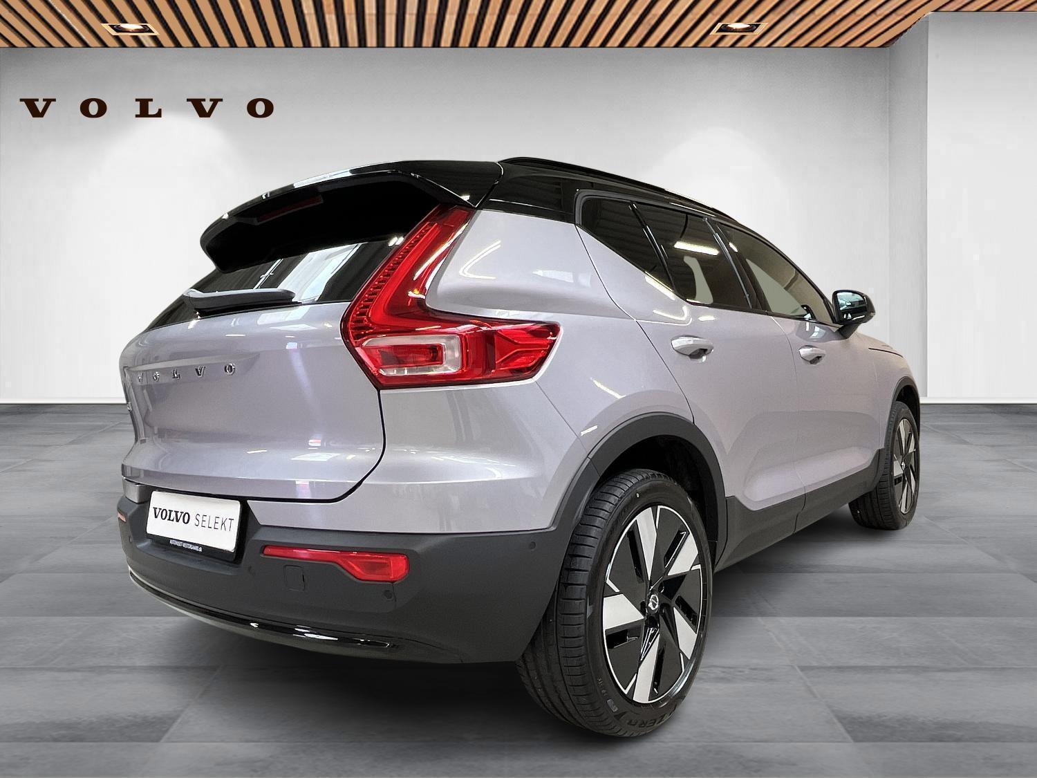| Aircondition, Android Auto, Apple CarPlay, Aut. nedblændeligt bakspejl, Automatisk lys, Automatisk op-/nedblænding, Bakkamera, Bluetooth, Centrallås, DAB radio, Digital instrumentering, El indst. forsæder, El indst. førersæde m. memory, El-bagklap med fodsensor, El-forbold spejle m. memory, aut. nedblædning og varme, El-håndbremse, El-justerbar lændestøtte i forsæder, Elruder for/bag, El-spejle, Fartbegrænser, Fartpilot adaptiv, Fjernbetjent centrallås, Frontkamera, Harman Kardon anlæg, Harman Kardon lydanlæg, Hastighedsbegrænser, Håndfri telefon, Infocenter, Internet, Klimapakke, Klimaanlæg 2-zoner, Multifunktionsrat, Musikstreaming via bluetooth, Navigation, Nøglefri døre, Nøglefri start, One pedal drive, Panoramasoltag, Parkeringssensor for/bag, Planlagt forvarmning af kabine, Regnsensor, Servo, Stemmestyring, Sædevarme for/bag, Touchskærm, Trådløs mobilopladning, Udvendig temperaturmåler, USB-C, Varme i bagruden, Varme i bagsæde, Varme i rat, Varmepumpe, Varmepumpe , 19" Alufælge, DC Hurtiglader, Frunk, Fuld LED forlygter, LED forlygter, LED kørelys, LED Kørelys, Dynamisk Fuld LED forlygter, Matrix LED forlygter, Metallak, Mørktonede ruder bag, Armlæn, Armlæn bag, Bagagerumsdækken, Delkunstlæderindtræk, Justerbart rat, Kopholder, LED interiørbelysning, Læderrat (Kunstlæder), Microtech Kabine (Vegansk Læder), Multijusterbart rat, Mørk loftbeklædning, Rat m. varme, Sort himmel, Splitbagsæde, Trådløs opladning af smartphone, 360 gr. View kamera, 360 graders kamera, 3-Faset, ABS, Adaptiv Fartpilot, Afstandsradar, Airbag, Alarm, Antispin, Blindvinkelassistent, BLIS, Fører-airbag, Isofix, Lyssensor, Pilot Assist, Selealarm, Skiltegenkendelse, Træthedsregistrering, Vejbaneassistent, Volvo On Call |