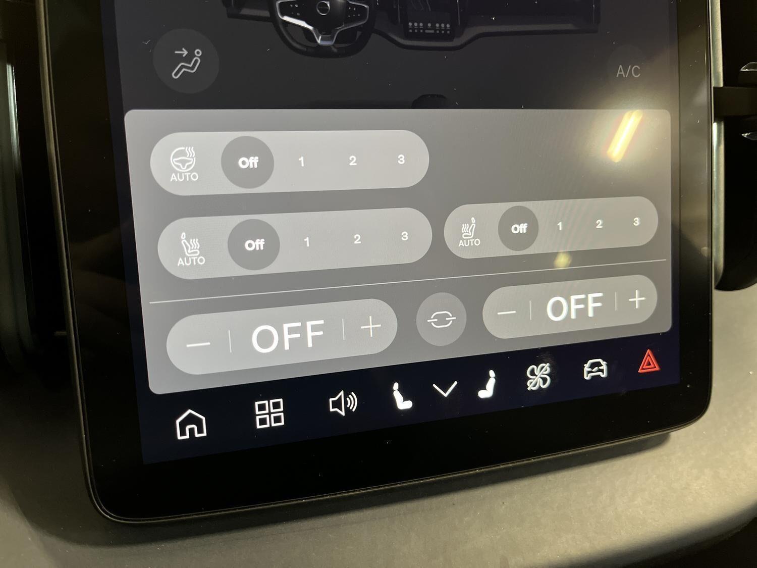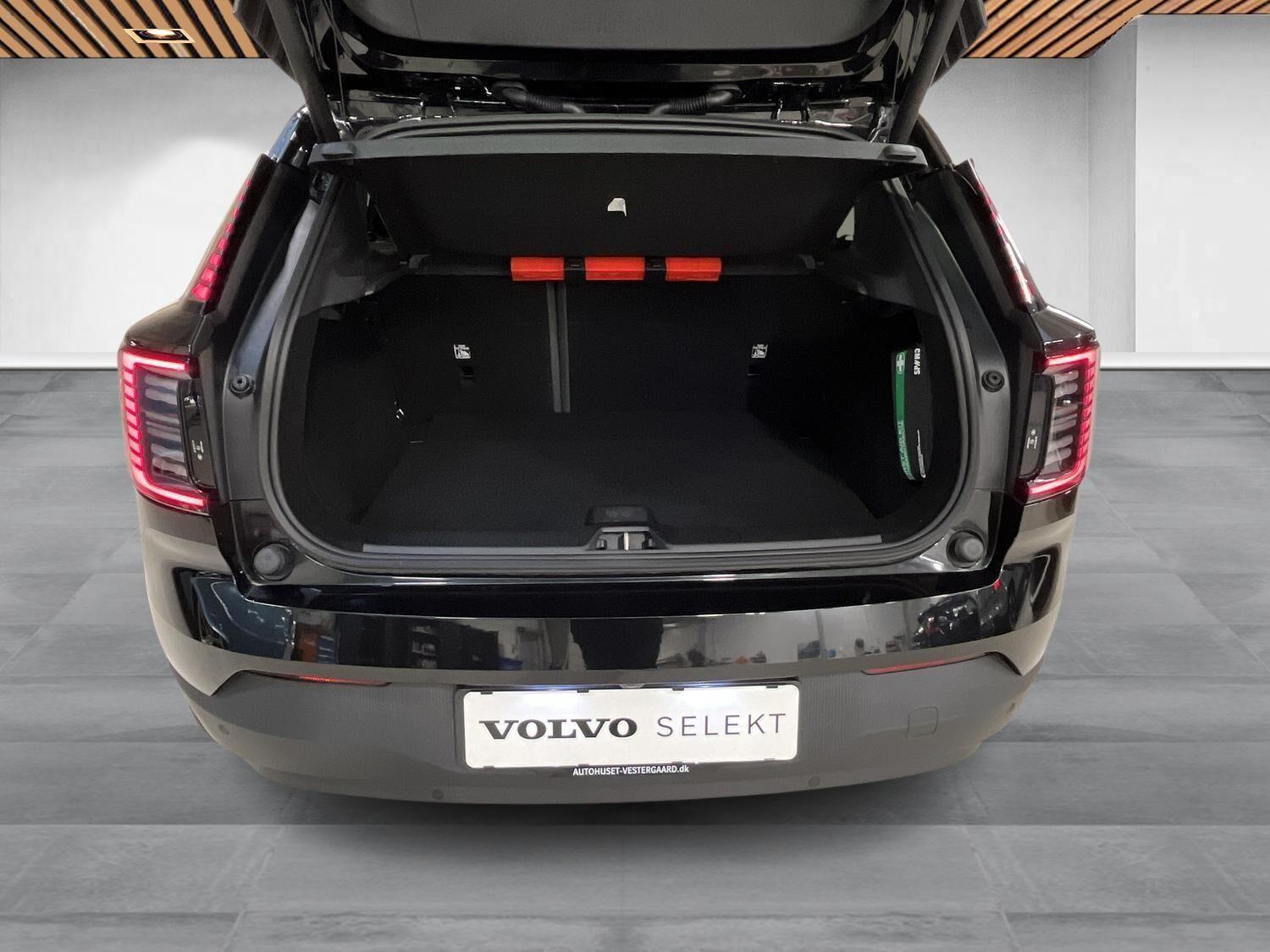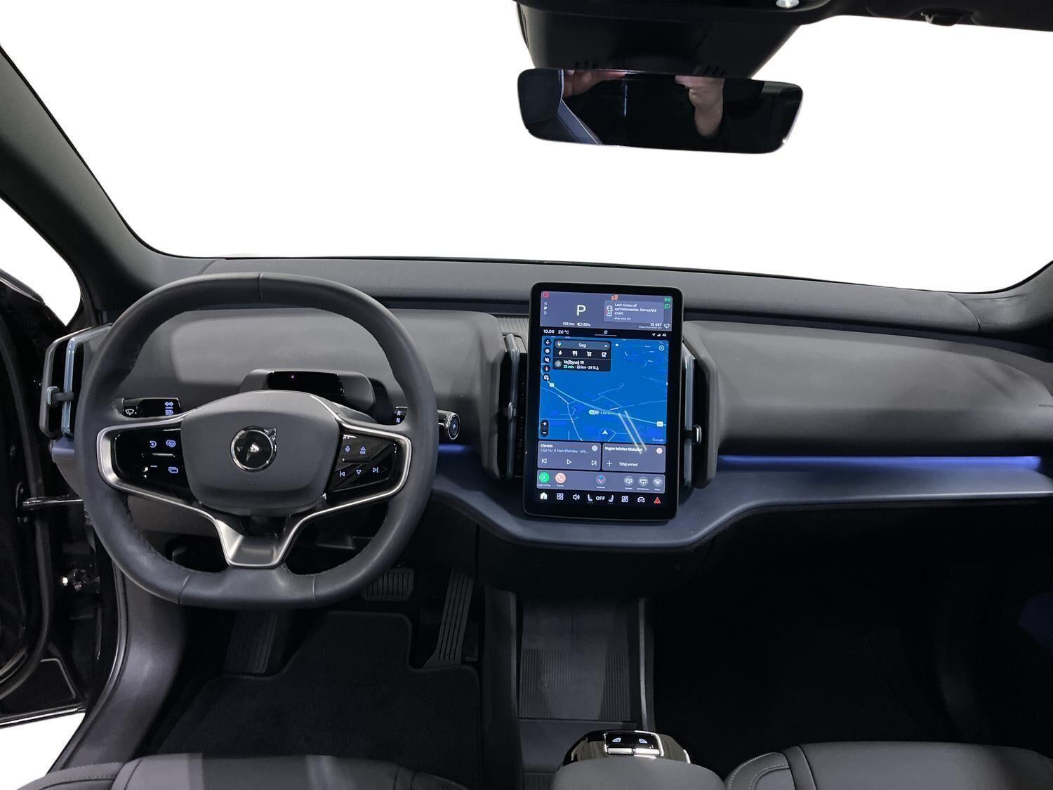 | Apple CarPlay, Automatisk lys, Automatisk op-/nedblænding, Bakkamera, Bluetooth, Centrallås, DAB radio, Digital instrumentering, El indst. forsæder, Elektrisk bagklap, El-foldbare spejle, El-håndbremse, Elruder for/bag, El-spejle med varme, El-spejle, Fartbegrænser, Fartpilot adaptiv, Fjernbetjent centrallås, Frontkamera, Hastighedsbegrænser, Håndfri telefon, Infocenter, Internet, Klimaanlæg 2-zoner, Kørecomputer, Multifunktionsrat, Musikstreaming via bluetooth, Navigation, Nøglefri døre, Nøglefri start, One pedal drive, Panoramaglastag, Parkeringssensor for/bag, Planlagt forvarmning af kabine, Regnsensor, Servo, Stemmestyring, Sædevarme for, Touchskærm, Trådløs mobilopladning, Udvendig temperaturmåler, USB-C, Varme i bagruden, Varme i rat, Varmepumpe, 20" Alufælge, DC Hurtiglader, Frunk, Fuld LED forlygter, LED baglygter, LED forlygter, LED kørelys, LED Kørelys, Metallak, Armlæn, Armlæn bag, Bagagerumsdækken, LED interiørbelysning, Læderrat (Kunstlæder), Multijusterbart rat, Mørk loftbeklædning, Sort himmel, Splitbagsæde, Trådløs opladning af smartphone, 360 gr. View kamera, 360 graders kamera, 3-Faset, ABS, Adaptiv Fartpilot, Afstandsradar, Airbag, Antispin, Alarm, Blindvinkelassistent, BLIS, 22kW AC-ladning, Isofix, Lyssensor, Pilot Assist, Selealarm, Skiltegenkendelse, Træthedsregistrering, Vejbaneassistent, Volvo On Call |