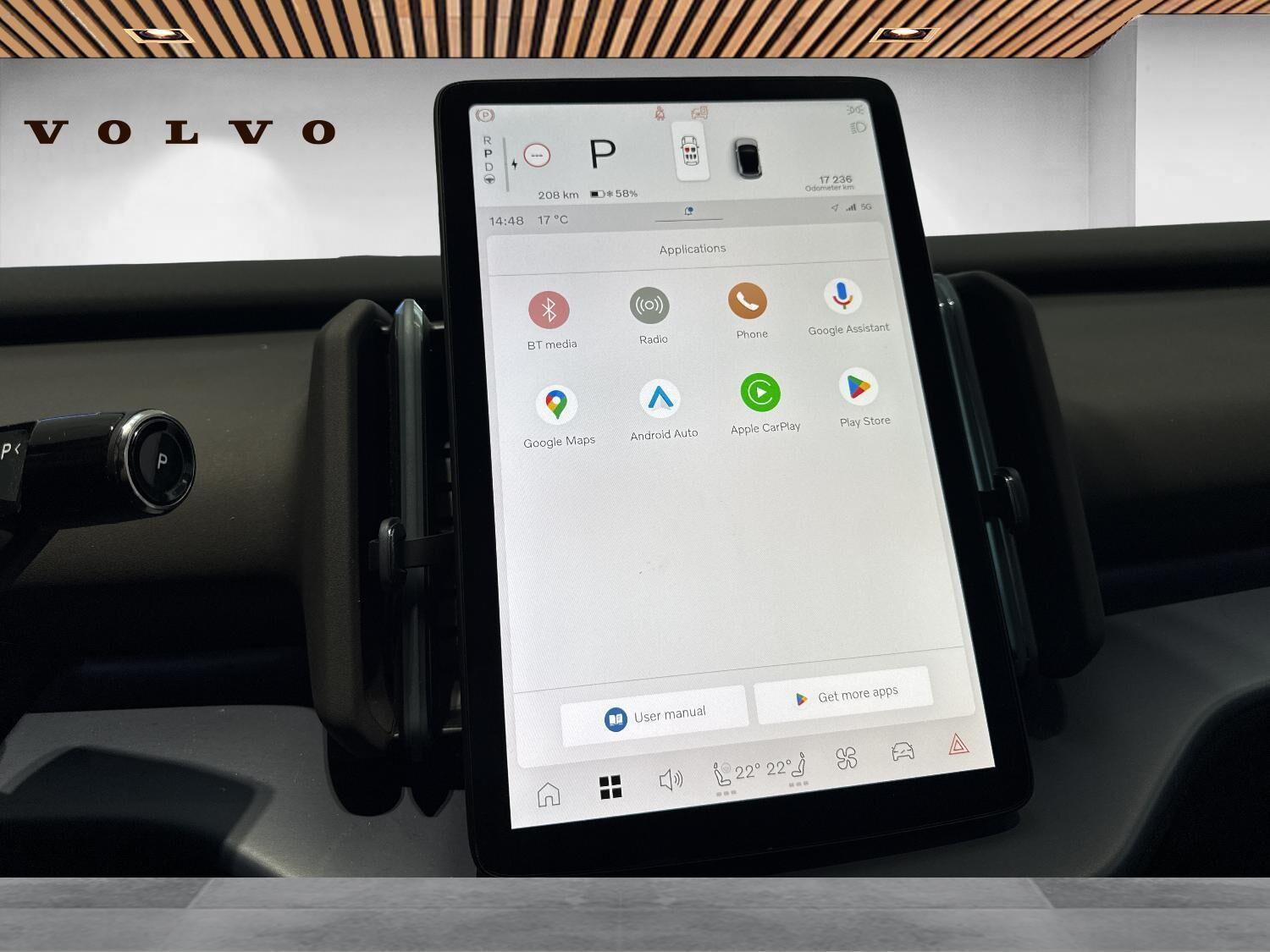 | Apple CarPlay, Aut. nedblændeligt bakspejl, Automatisk lys, Automatisk op-/nedblænding, Bakkamera, Bluetooth, Centrallås, DAB radio, Digital instrumentering, El indst. forsæder, Elektrisk bagklap, El-foldbare spejle, El-håndbremse, Elruder for/bag, El-spejle, Fartbegrænser, Fartpilot adaptiv, Fjernbetjent centrallås, Frontkamera, Harman Kardon anlæg, Hastighedsbegrænser, Håndfri telefon, Infocenter, Internet, Klimaanlæg 2-zoner, Kørecomputer, Multifunktionsrat, Musikstreaming via bluetooth, Navigation, Nøglefri døre, Nøglefri start, One pedal drive, Panoramaglastag, Parkeringssensor for/bag, Planlagt forvarmning af kabine, Regnsensor, Servo, Stemmestyring, Sædevarme for/bag, Touchskærm, Trådløs mobilopladning, Udvendig temperaturmåler, USB-C, Varme i bagruden, Varme i bagsæde, Varme i rat, Varmepumpe, Varmepumpe , 19" Alufælge, DC Hurtiglader, Frunk, Fuld LED forlygter, LED baglygter, LED forlygter, LED kørelys, LED Kørelys, Metallak, Mørktonede ruder bag, Ambient belysning, Ambiente belysning, Armlæn, Armlæn bag, Bagagerumsdækken, Delkunstlæderindtræk, Justerbart rat, Kopholder, LED interiørbelysning, Læderrat (Kunstlæder), Microtech Kabine (Vegansk Læder), Multijusterbart rat, Mørk loftbeklædning, Sort himmel, Splitbagsæde, Trådløs opladning af smartphone, 360 gr. View kamera, 360 graders kamera, 3-Faset, ABS, Adaptiv Fartpilot, Afstandsradar, Airbag, Alarm, Antispin, Blindvinkelassistent, BLIS, Fører-airbag, Isofix, Lyssensor, Selealarm, Skiltegenkendelse, Vejbaneassistent, Træthedsregistrering, Volvo On Call |